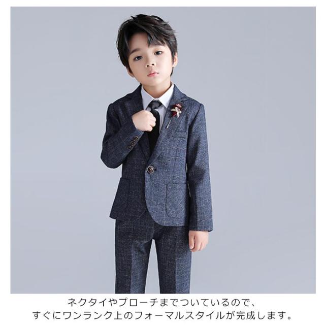 | にこだわったデザインが大人気の男の子スーツ。【ジャケット?パンツ?プローチ?ネクタイの4点セット】 入園・入学だけでなく結婚式やお食事会、発表会など華やかなシーンを彩るスーツセット。 ジャケット+パンツ+プローチ+ネクタイの4点セット 落ち着いた雰囲気で使いやすい深いネイビー。(ワインレッドとグリーンもあります。) 細身のラインがシャープなシルエットを強調します。袖口には3つの飾りボタンがついたおしゃれ仕様。背当て部分に裏地付きで上品さをオンしています。 パンツはセンタープレスを施されたテーパードパンツです。 ネクタイやプローチまでついているので、すぐにワンランク上のフォーマルスタイルが完成します。 卒業式や、結婚式、発表会など、セレモニーから冠婚葬祭まで幅広いシーンで活躍します。 | |