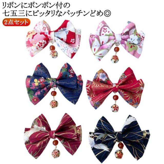 卒業式 袴 髪飾り 和装 成人式 着物髪飾り 浴衣 リボン ちりめん パッチンどめ ヘアクリップ 2点セット 赤 ピンク 白 ヘアアクセサリー 髪飾り 髪留め ヘアピン キッズ 子供 こども 女の子 753 初節句 七五三 三歳 3歳 ひな祭り 雛祭 花火大会 浴衣 かわいい 送料無料