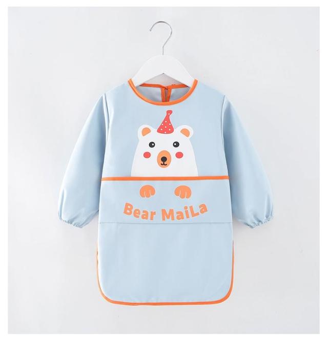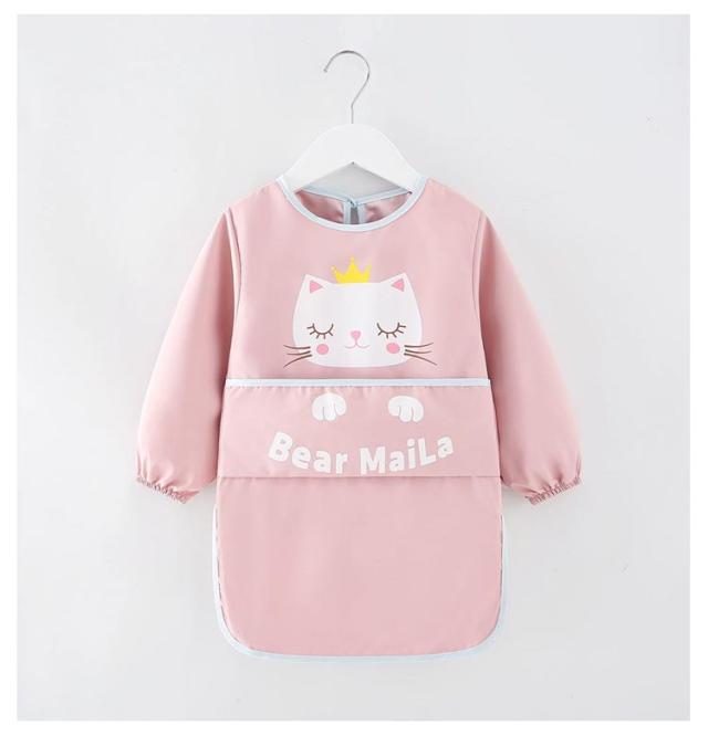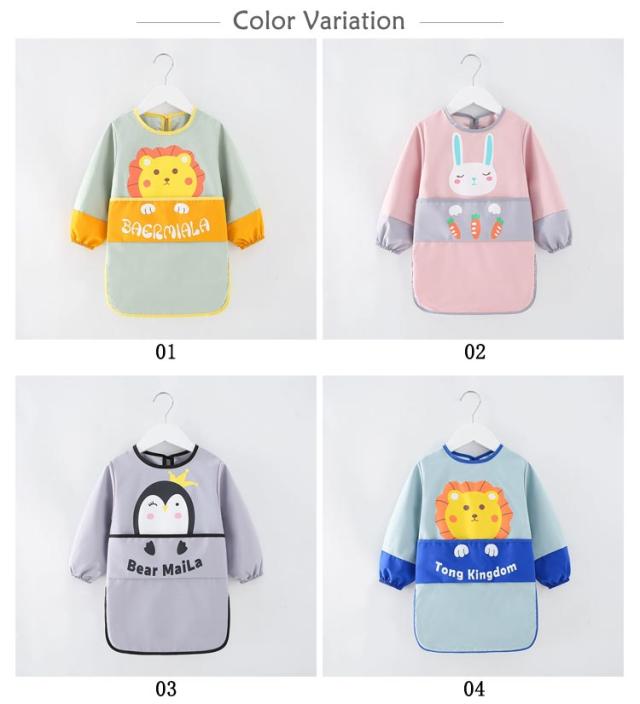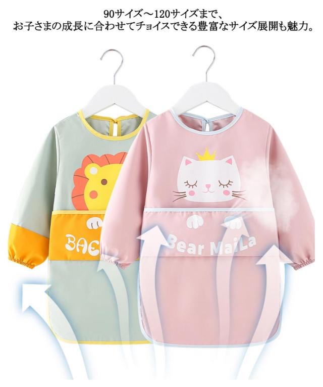 送料無料 スモック ロング丈 お食事エプロン 長袖スモック 防水 汚れ防止 ポケット付き 食べこぼし防止 ロング キッズ 男の子 女の子 子供 子ども 保育園 幼稚園 外遊び オールシーズン 入園グッズ 入園準備 可愛い アニマル柄 全7柄