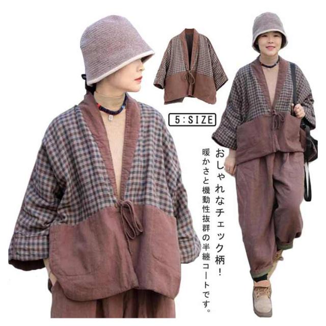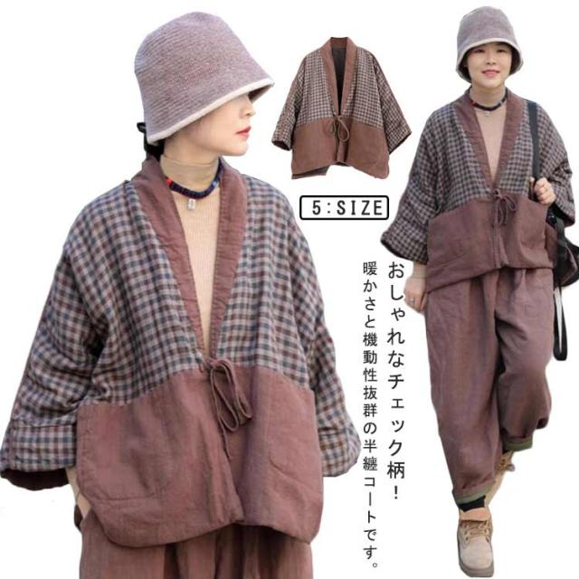 あったか半纏 半纏 レディース おしゃれ チェック柄 秋冬 民族風 部屋着 はんてん 暖かい ルームウェア 女性用 防寒 中綿入り 可愛い 保温 冷え対策 暖房対策 羽織り ポケット付き ギフト プレゼント 中華服 M L XL 2XL 3XL