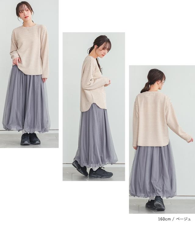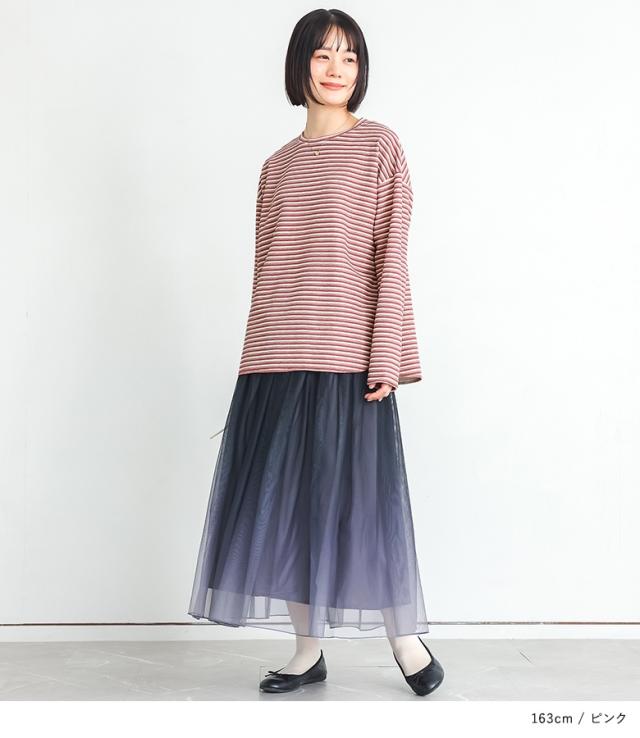 『リップルボーダーロンT』※メール便可※【10】[ロンT レディース トップス カットソー 長袖 リップルボーダー ボーダー ぽこぽこ プリント 配色 伸縮性 スリット オシャレウォーカー]