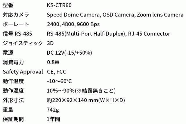 ■ KS-CTR60 | RS-485方式3Dジョイスティック搭載PTZカメラ用コントローラー【防犯カメラ】【監視カメラ】
