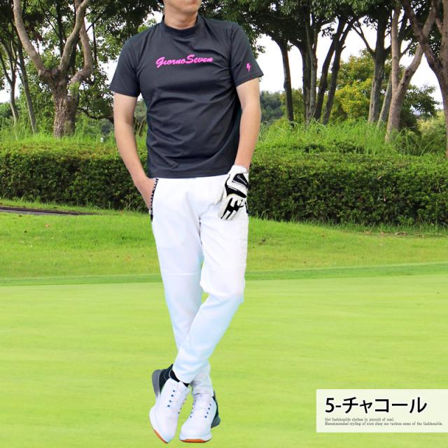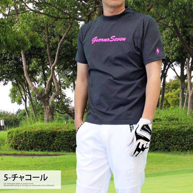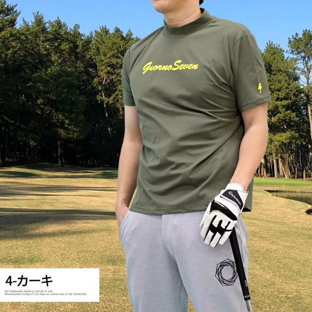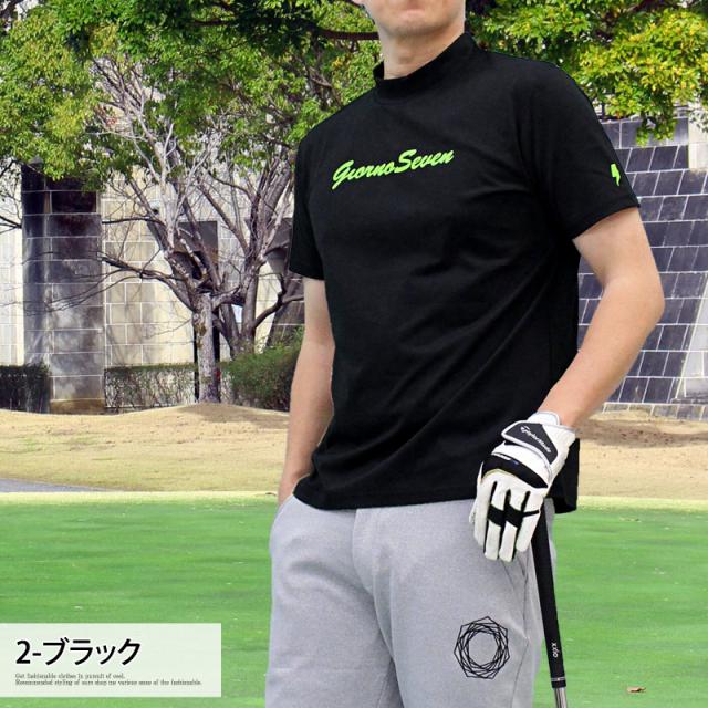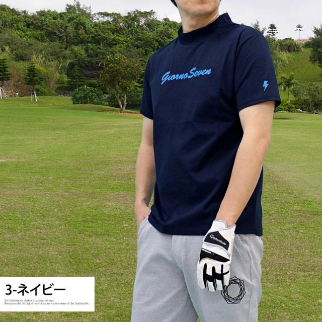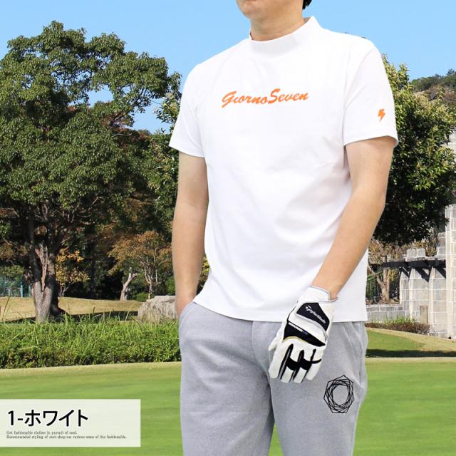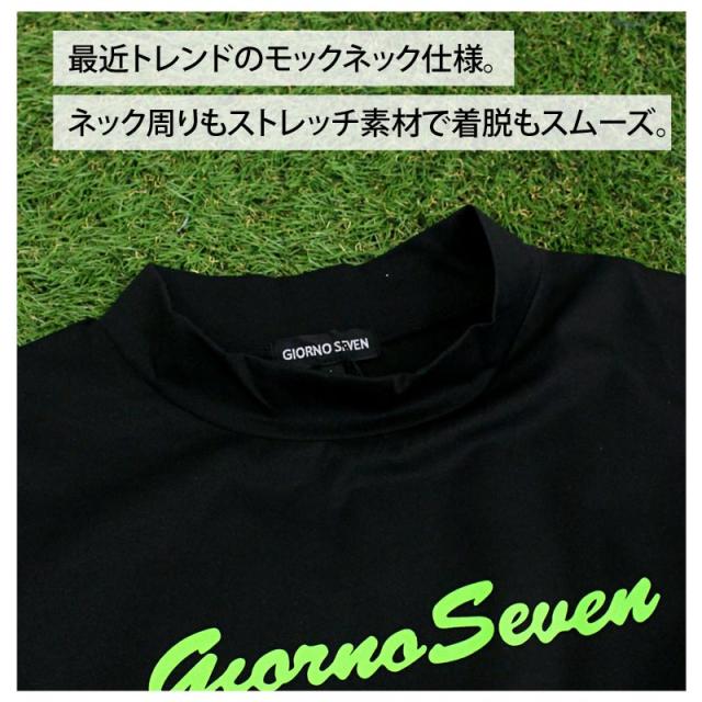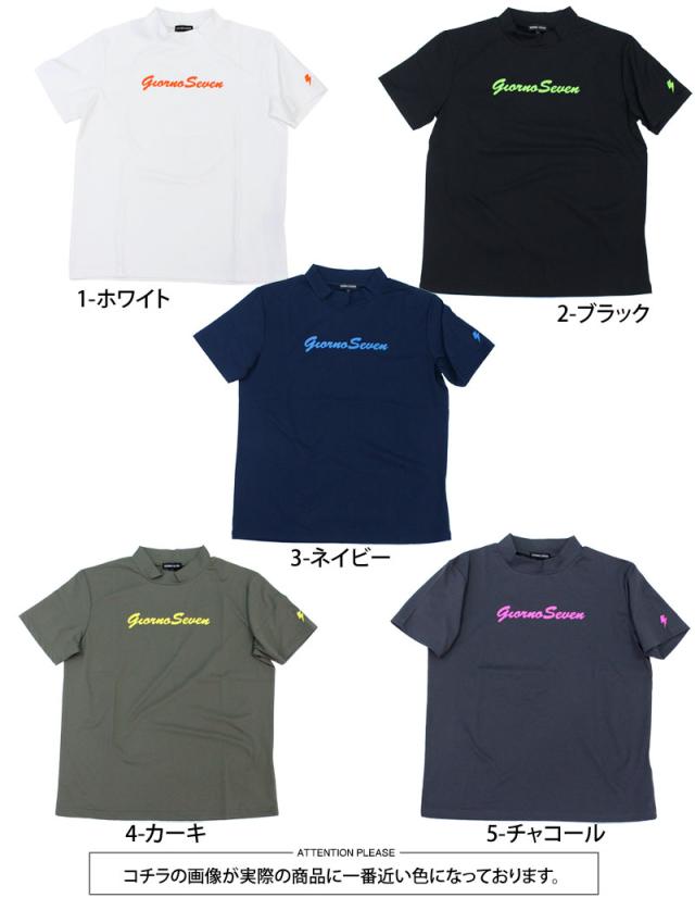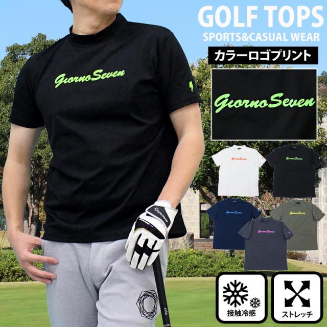 M~3XL 春夏 新作 ゴルフウェア モックネックシャツ メンズ GIORNO SEVEN ジョルノセブン ハイネック ゴルフ 接触冷感 ストレッチ 半袖 蛍光ロゴプリント トップス ポロシャツ Tシャツ 送料無料 ゆうパケ