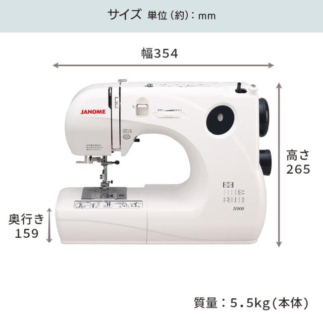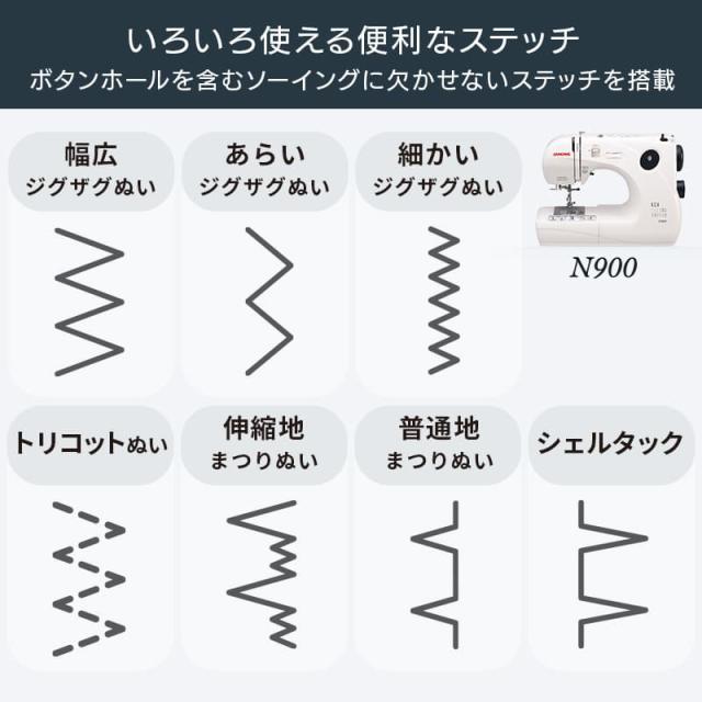 ジャノメ JANOME 電子ミシン N900 本体 コンパクトミシン 2WAY 厚地 入園 入学 糸通し フリーアーム LEDライト ハードカバー 目とび防止 代金引換不可