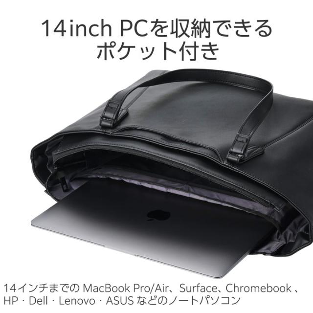 【在庫処分・お買い得!】 エレコム トートバッグ ORGULLO 横型01 合皮 スマホポケット 14.0inch 15L ソフトレザー ブラック ┃BM-TBSLH01BK