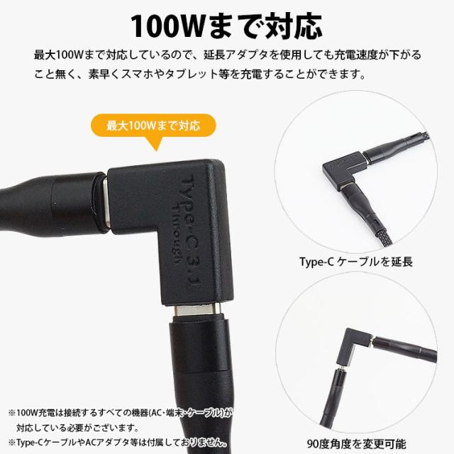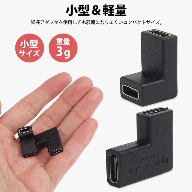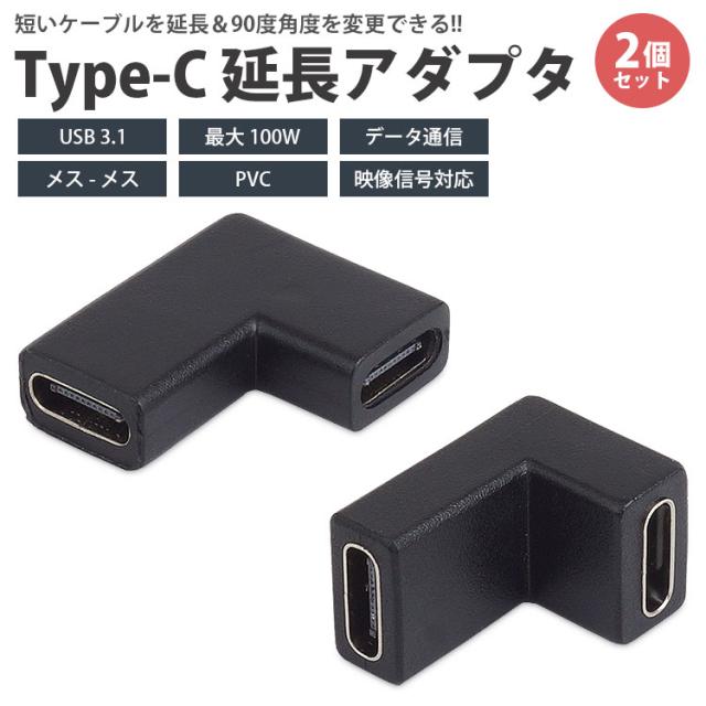 USB Type-C 延長アダプタ 2個セット 中継アダプタ 角度変更 L字型 L型 USB 3.1 最大100W データ通信 データ転送 映像信号対応 タイプC USB C メス メス 小型 持ち運び PR-USBC-LX-2ST【メール便 送料無料】