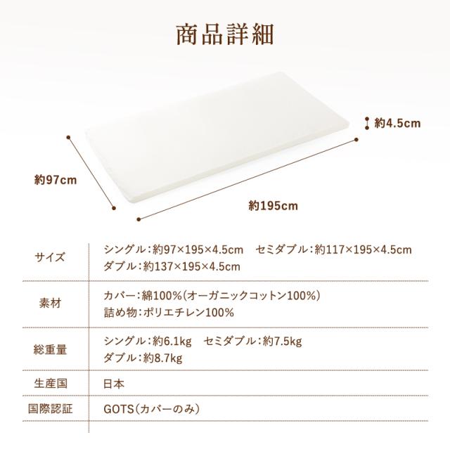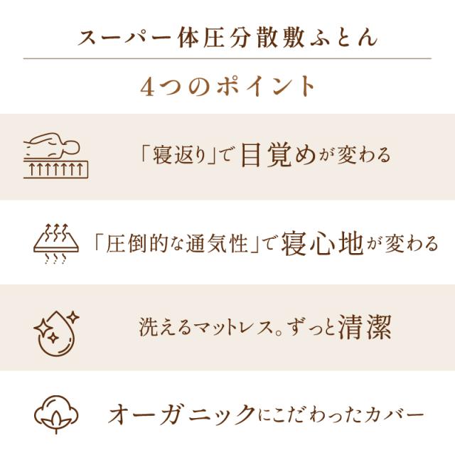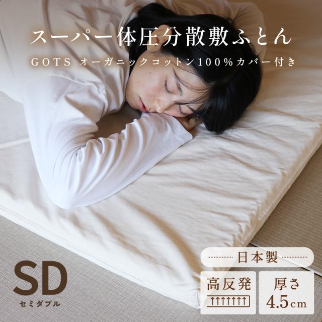 【洗えるマットレス】スーパー体圧分散敷ふとん4.5cm セミダブル(オーガニックコットン100%カバー付き)日本製 高反発マットレス ポリエチレン 網状立体構造 敷布団 寝返り楽々 床ずれ防止 ダニ対策 腰痛対策 速乾 自宅で洗える 折りたたみ 三つ折り 薄型 薄い