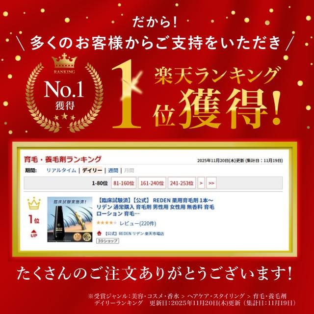■関連ワード(商品説明ではございません)REDEN リデン 薬用育毛剤 育毛剤 臨床試験済 育毛ローション 育毛トニック 医薬部外品 リデンシル 男性用育毛剤 女性用育毛剤 スカルプケア 発毛促進 養毛剤 薄毛対策 抜け毛予防 男性 女性 育毛ケア ヘアケア 男女兼用 メンズ レディース 育毛促進 薄毛予防 薄毛改善 脱毛予防 増毛ケア用品 高品質 毛根活性 ヘアトニック マッサージ ふけ フケ かゆみ ハリ コシ 頭皮 地肌 スカルプ エイジングケア 日本製 白箱梱包 プレゼント ギフト 父の日 敬老の日 育毛剤ランキング 育毛剤おすすめ オススメ 人気 ブラックフライデー※発毛剤ではなく育毛剤※ミノキシジル配合等の医薬品ではなく医薬部外品