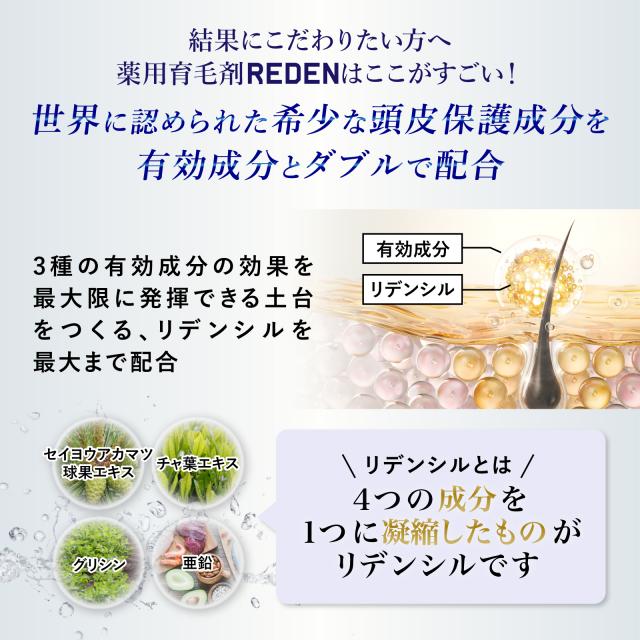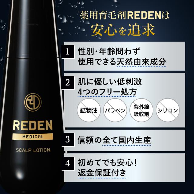 【クーポン組み合わせで最大50%OFF】 REDEN [公式店限定全額返金保証付き] リデン 薬用育毛剤 育毛剤 臨床試験済 育毛ローション 育毛トニック 医薬部外品 リデンシル 男性用育毛剤 女性用育毛剤 スカルプケア 発毛促進 養毛剤 薄毛対策 抜け毛予防 男性 女性