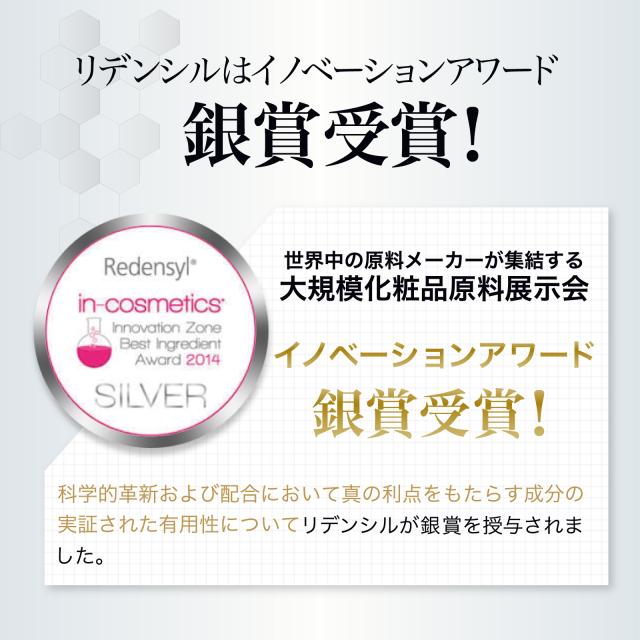 セイヨウアカマツ球果エキス・チャ葉エキス・グリシン・亜鉛 の4つの成分を1つにまとめたものが、リデンシル。リデンは、リデンシル配合量No.1*で、日本で唯一リデンシル公式認定マークを取得しています。また、リデンシル原料メーカーからリデンシル最適配合育毛剤と認定され、さらにイノベーションアワードも2年連続受賞いたしました。*日本マーケティングリサーチ機構調べ 調査概要:2020年4月期_実績調査