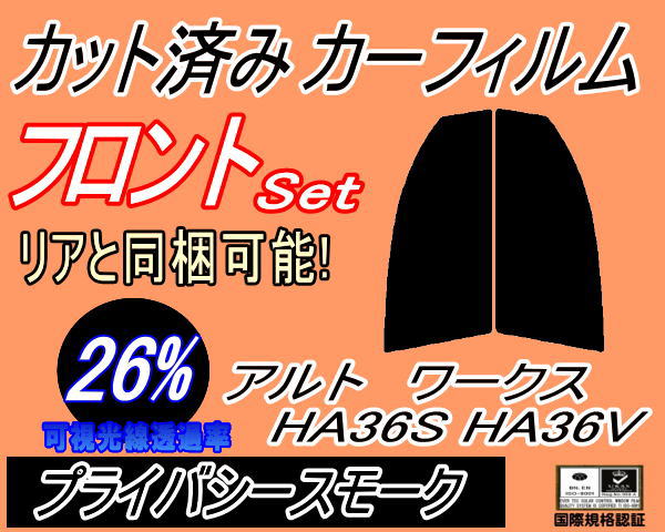 フロント (s) アルトワークス HA36S HA36V (26%) カット済みカーフィルム 運転席 助手席 三角窓 左右セット スモークフィルム フロントドア 車種別 スモーク 車種専用 成形 フイルム 日よけ 窓 ガラス ウインドウ 紫外線 UVカット HA36S HA36V スズキ