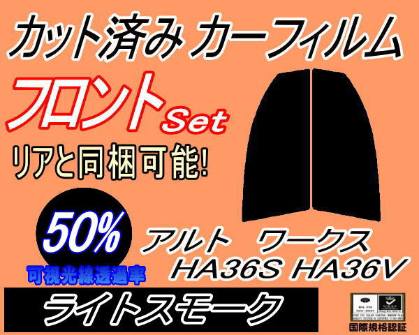 【送料無料】フロント (s) アルトワークス HA36S HA36V (50%) カット済みカーフィルム 運転席 助手席 三角窓 左右セット スモークフィルム フロントドア 車種別 スモーク 車種専用 成形 フイルム 日よけ 窓 ガラス ウインドウ 紫外線 UVカット HA36S HA36V スズキ