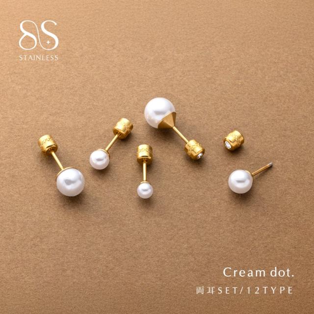 豊富なサイズ展開が魅力な、一粒パールのネジロック式ピアス。3mm〜8mmの6サイズから選べる全12展開。爪なし台座のスッキリとしたデザインがパール引き立て品の良い仕上がりに◎クリアビジューが煌くキャッチで前後どちらから見ても可愛く、シーンに合わせて複数買いするのもオススメ♪錆びにくく傷に強いステンレス製です。