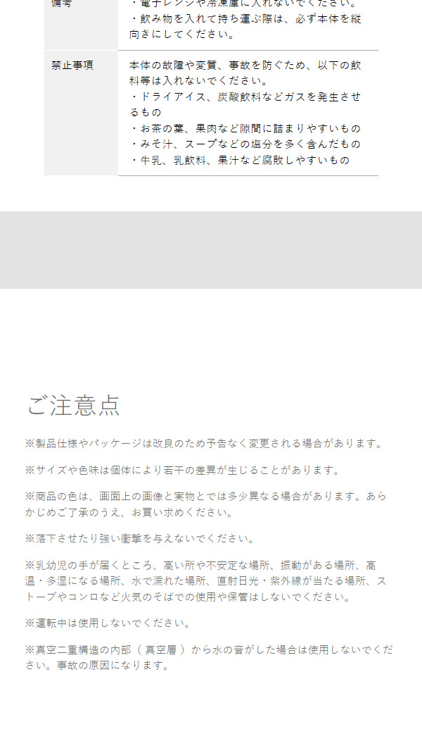 - 700mlの大きい方を買ったのですが径が太いし中身満タンにすると片手で持つのは重たい。もちろん車のドリンクホルダーには入りません。何度も飲み物を入れに行かなくて済むように大きいのを買ったのでまぁこれで良いかな。