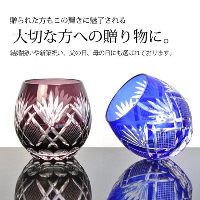 受け継がれたカットグラスの工法で、ひとつひとつ手づくりされた切子グラスです。 切子ならではの上品な輝きが楽しめます。 ずっと眺めていたいほどの美しいデザイン、色合いが食卓を華やかに演出してくれます。 そのクオリティの高いデザインは熟練の職人達がハンドメイドで作り上げ、ひと味違う温かみのある製品を作りだしています。 食洗機にも対応しています。 上品なデザインで、また、幅広い用途がありますので、贈り物にも喜ばれます。 桐箱入りで、両親や目上の方へのプレゼント、結婚祝い、父の日、母の日、敬老の日などにもおすすめです。 |