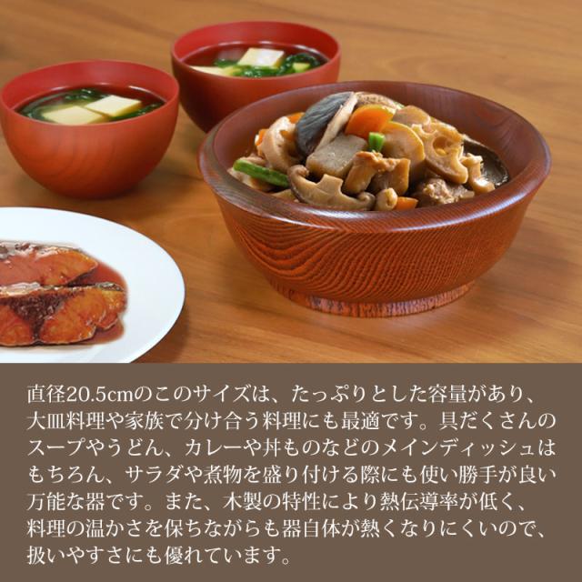 木製 多用鉢 渕太 20.5cm 漆塗り 盛り鉢 盛り皿 多用椀 木目 おしゃれ 大鉢 中鉢 深皿 うるし 鉢 サラダボウル 煮物鉢 大皿 深め 軽い 漆器 お皿 大きい 食器 パーティー 軽量 和風 丼ぶり カフェ