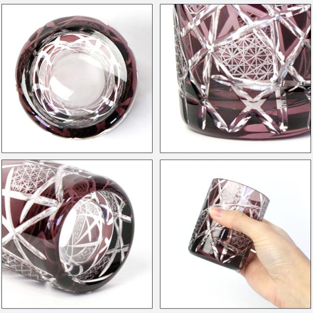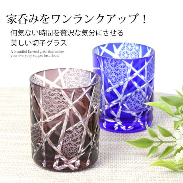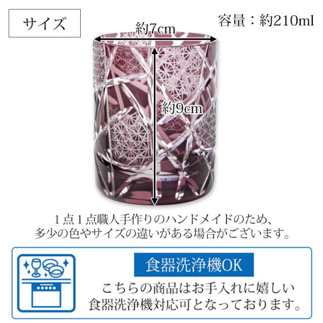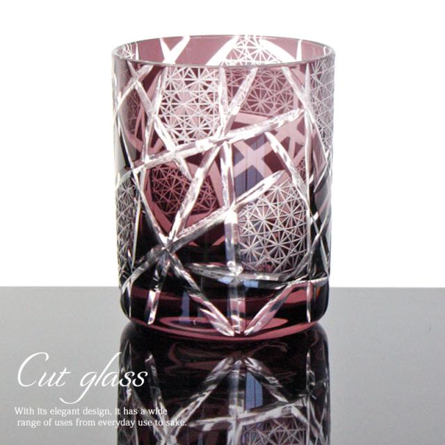 切子グラス 切子 オールド グラス 210ml 単品 パープル 紫 ギフト プレゼント おしゃれ きりこ ガラス 食洗機対応 ロックグラス コップ 退職祝い 還暦祝い 酒器 日本酒 硝子 お祝い 贈り物 キリコ
