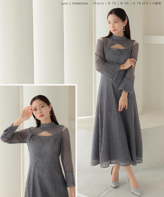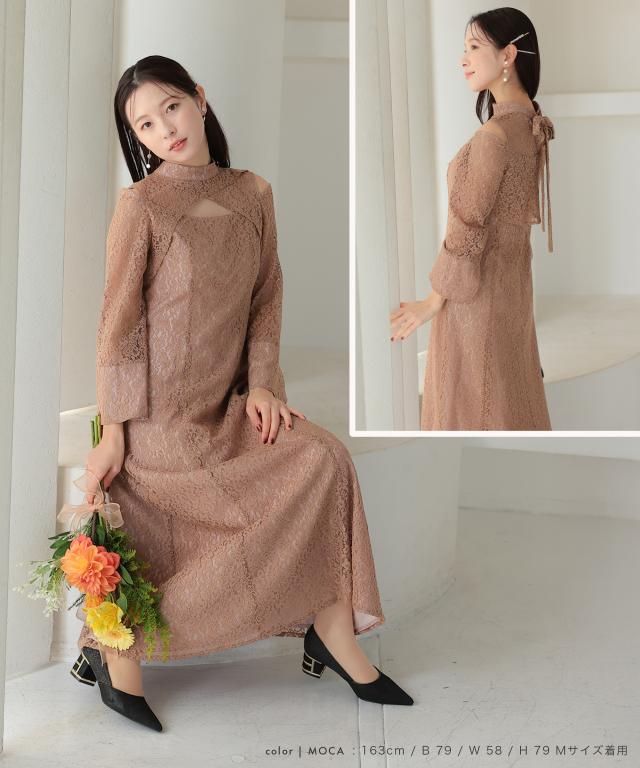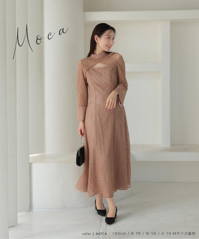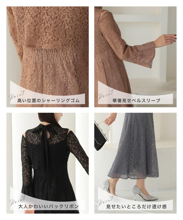 結婚式お呼ばれドレス おしゃれドレス 結婚式 謝恩会 パーティー お呼ばれ カラードレス ロングドレス 総レース 二次会 披露宴 セレモニー 20代 30代 40代 50代 モカ チャコール ブラック 茶 グレー 黒
