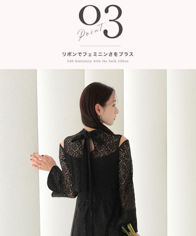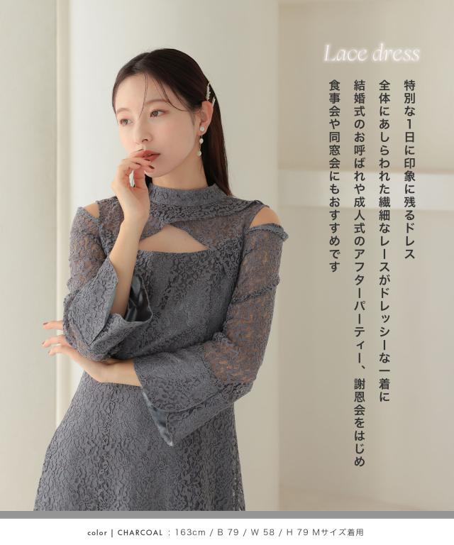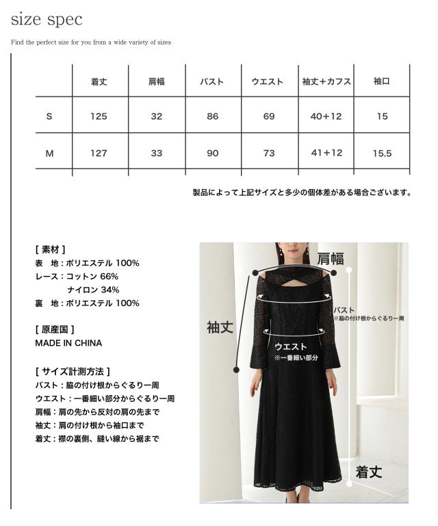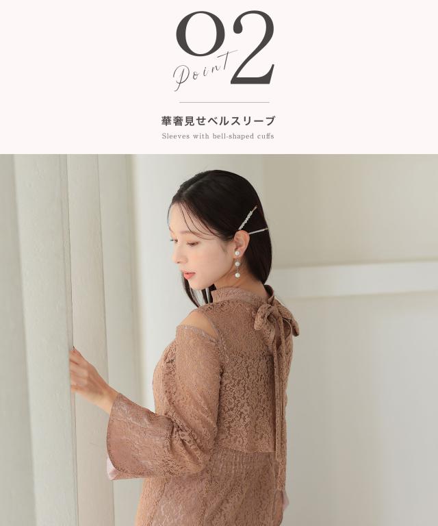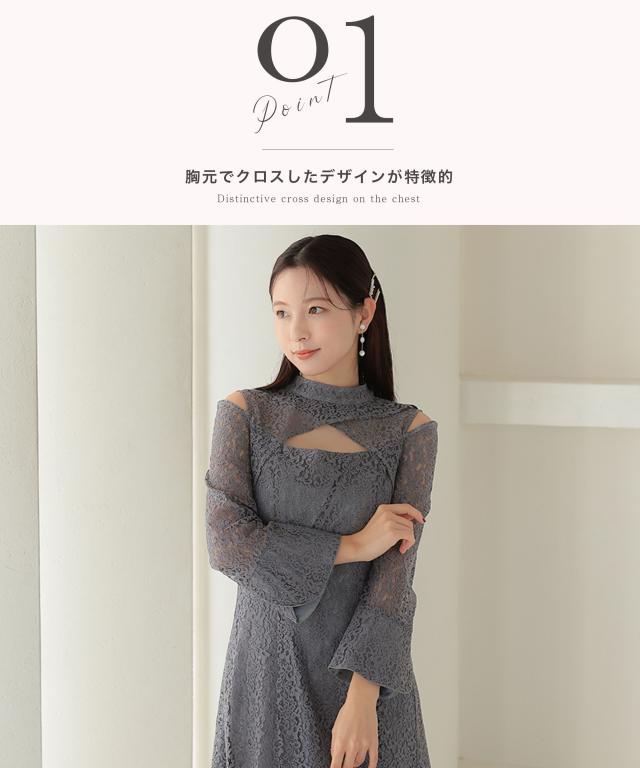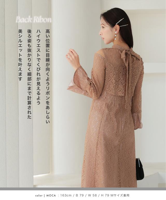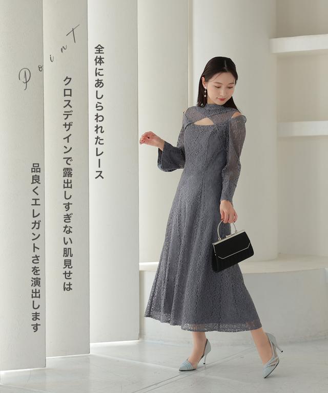 | 総レースをあしらった上品でエレガントなドレス。 袖口がベルのように広がったパフスリーブは、おしゃれな印象と華奢見せ効果も。 高い位置に視線が向くよう背中のバックリボンやハイウエストにシャーリングゴムが施され、どこから見ても美しく見えるよう、計算されたシルエットに。 幅広のショルダーストラップが胸元でクロスしたデザインが特徴で肌見せのバランスが良く、華奢見えしながらも隠したいところはしっかり隠してくれます。。 |