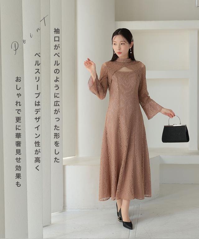 結婚式 お呼ばれ ドレス パーティードレス マキシ丈 総レース ワンピース 袖あり ベルスリーブ フォーマルワンピース 二の腕カバー 華奢見せ パーティー 二次会 成人式 同窓会 謝恩会 発表会 オールシーズン おしゃれ 20代 30代 40代 50代