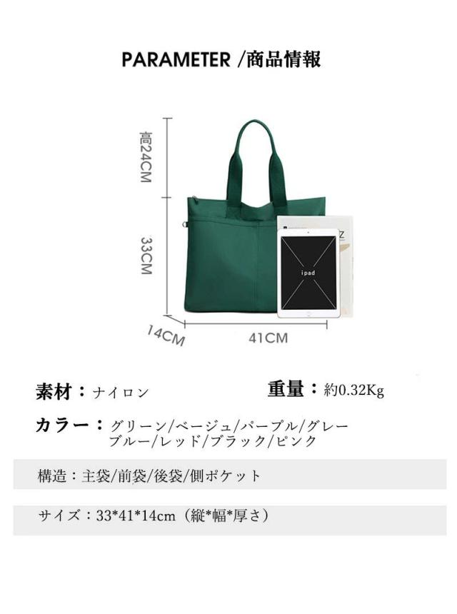 バッグ レーディス トートバッグ きれいめナイロン タックトートバッグ 軽量 多機能トートバッグ 大容量 通勤 通学 斜め掛け 仕切り レディース 帆布 ランチバッグ ママバッグ かわいい BAG 通勤 通学帆布 バッグ 自立する キャンバス 無地 母の日 新生活応援