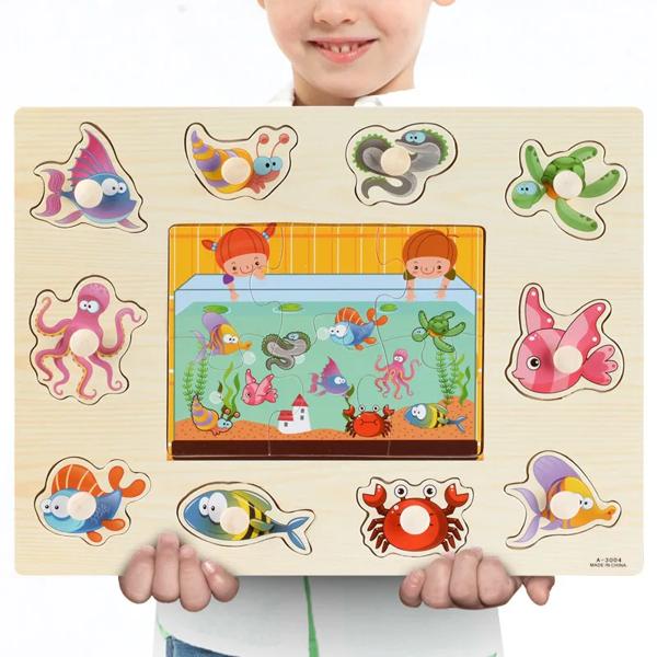 モンテッソーリ-木製パズル,ひも,赤ちゃんの教育玩具,漫画の車,動物,果物の3Dパズル