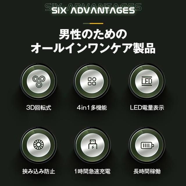 本体のヘッドを簡単に交換することにより、鼻毛トリマー、洗顔ブラシ、理髪機の機能が実現します。ワンボタンで操作簡単に初心者でも気軽く把握ができます。一台で全身の無駄毛を簡単に整えます。
