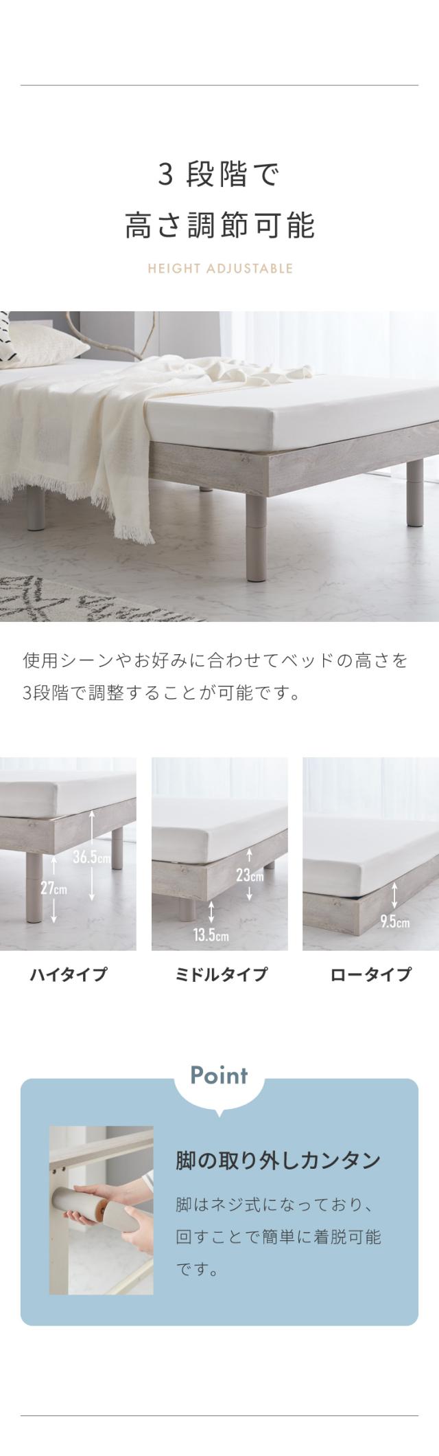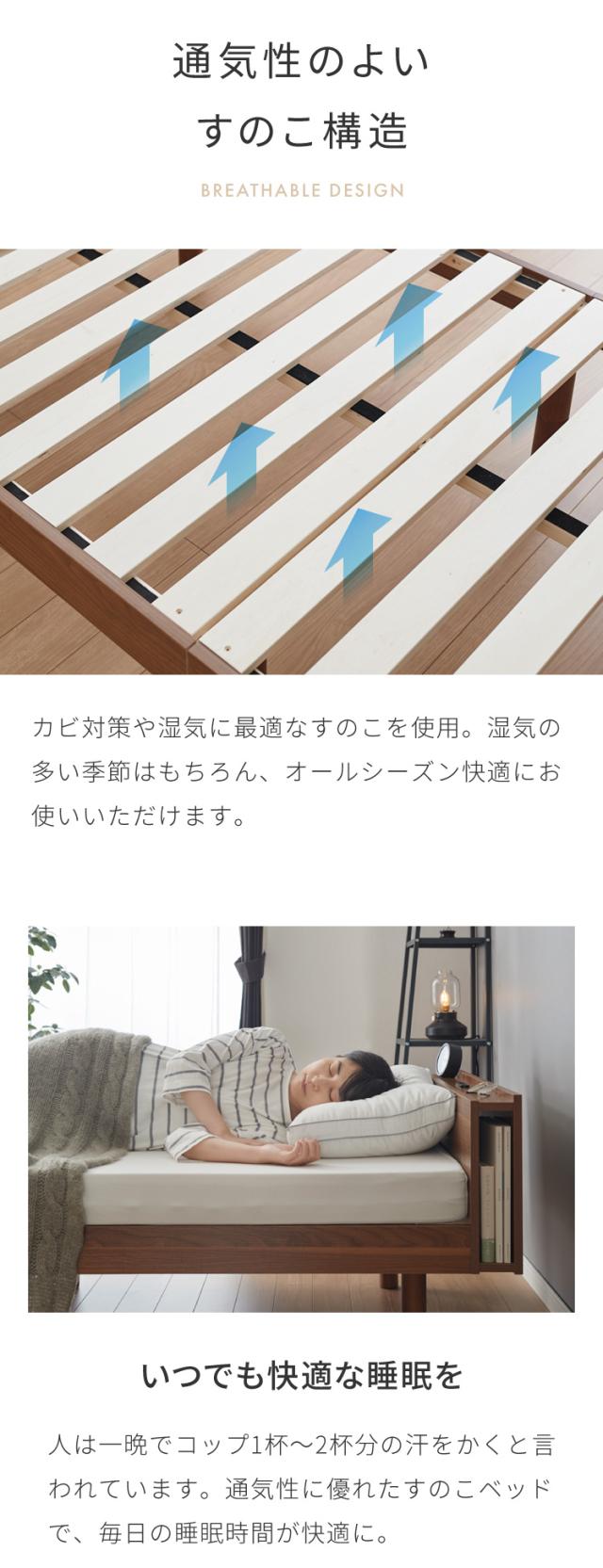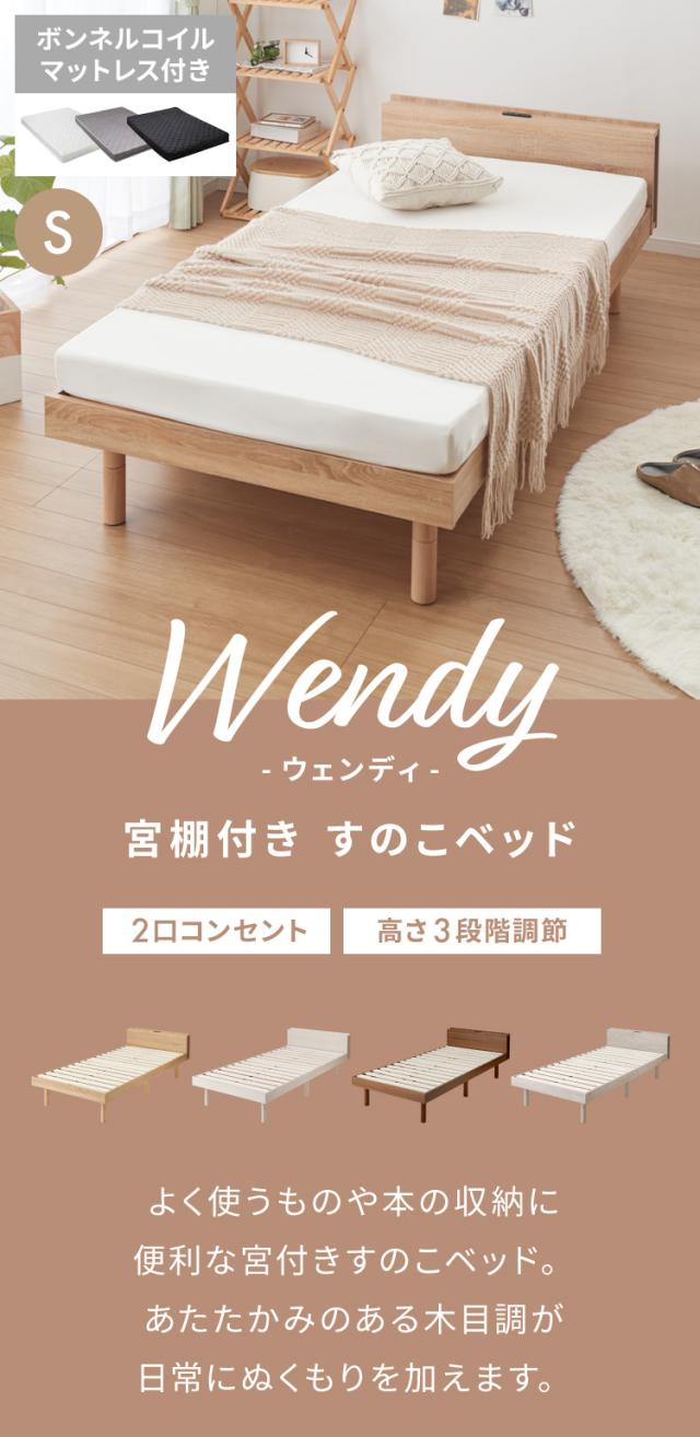 すのこベッド ウェンディ 宮棚付き 高さ3段階調整