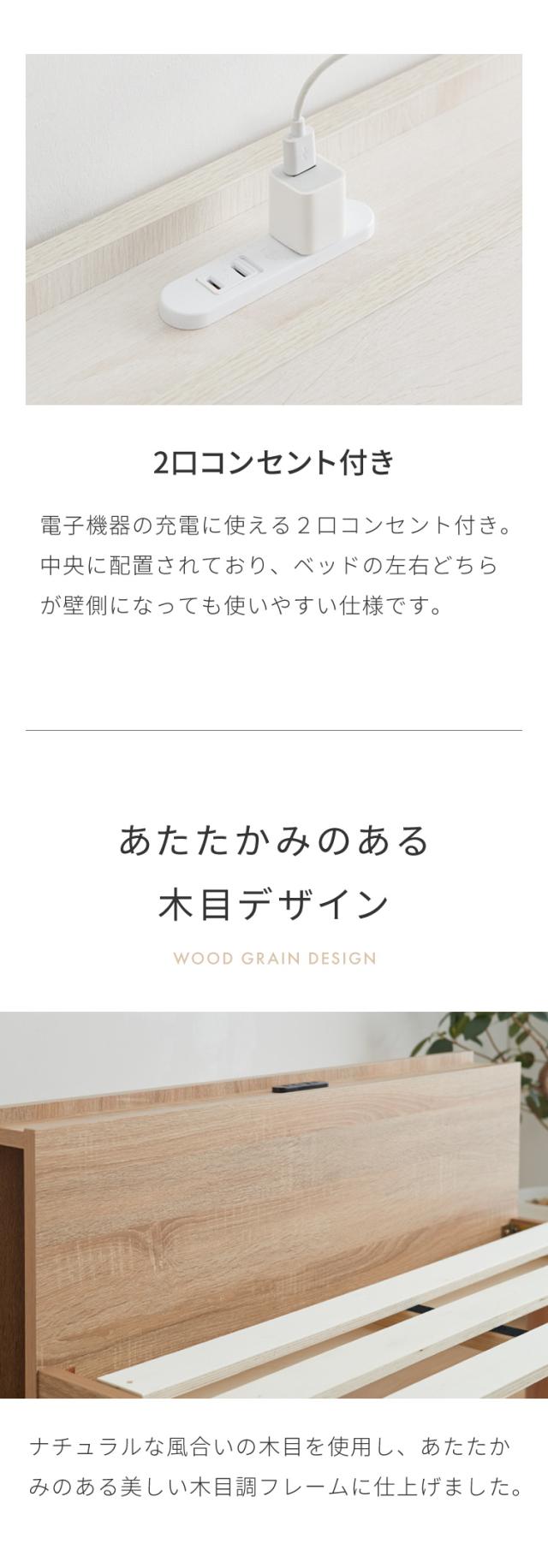 マットレス付き ベッド すのこベッド シングル ベッドフレーム 宮付き 宮棚 ボンネルコイル 棚付き ヘッドボード 2口コンセント付き メラミン 収納ベッド シングルベッド【送料無料】