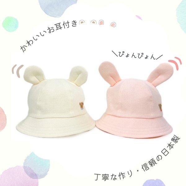 HB エイチビー ハヤシ帽子 うさぎ うさ耳 耳付き コットンハット 耳付きハット ボンネ ベビー帽子 子供帽子 赤ちゃん帽子 帽子 日本製 国産 あご紐付き あご紐 あごゴム付き あごゴム サンズマーケット