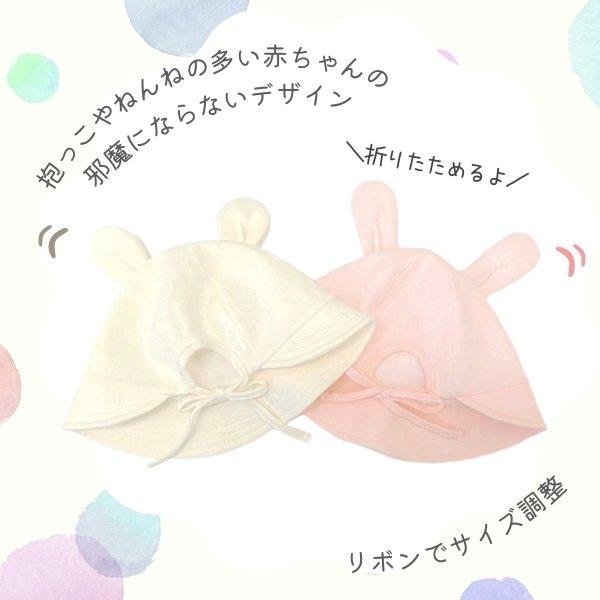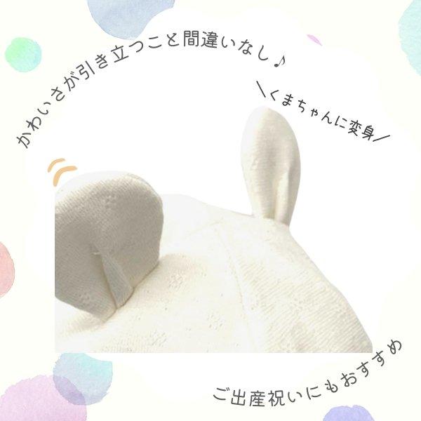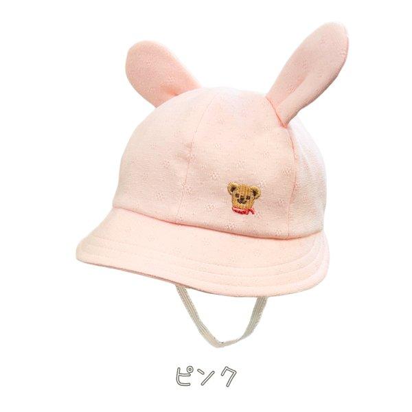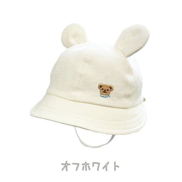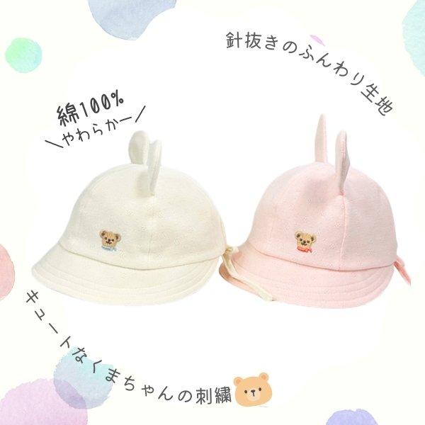 HB お耳付きハット ベビー 42〜46cm 日本製 コットンハット ボンネ あご紐付き 手洗い くま耳 うさぎ耳 綿100% 柔らか 紫外線対策 UVケア 日よけ 赤ちゃん 新生児 乳児 子供 男の子 女の子 国産 春 夏 秋 オールシーズン 帽子 23435H