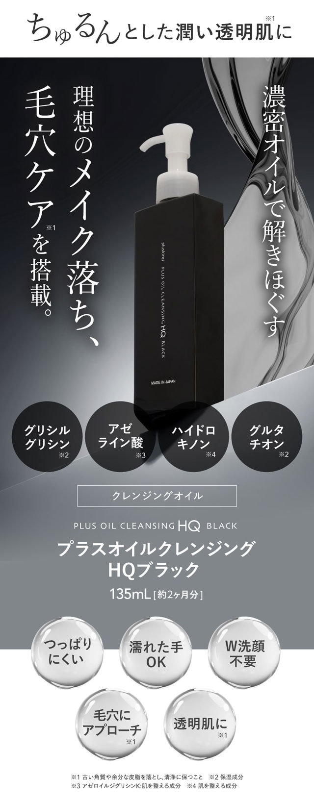 | 商品名 | プラスオイルクレンジング HQブラック ●配合成分につきましては、上記の商品名をクリックしてご確認ください |