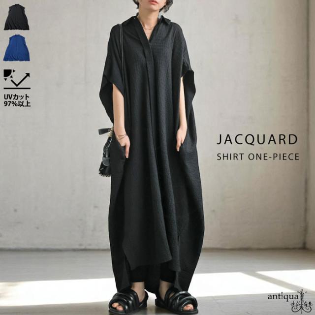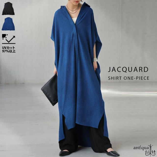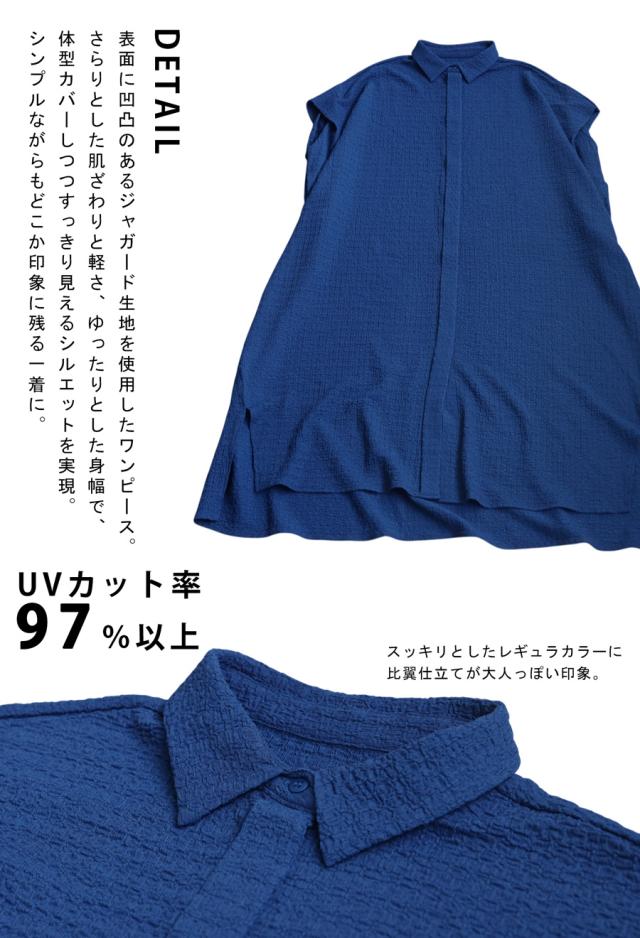 母の日クーポン対象☆22日19時〜28日10時 ジャガード シャツワンピース レディース UVカット 送料無料 ・再入荷 メール便不可