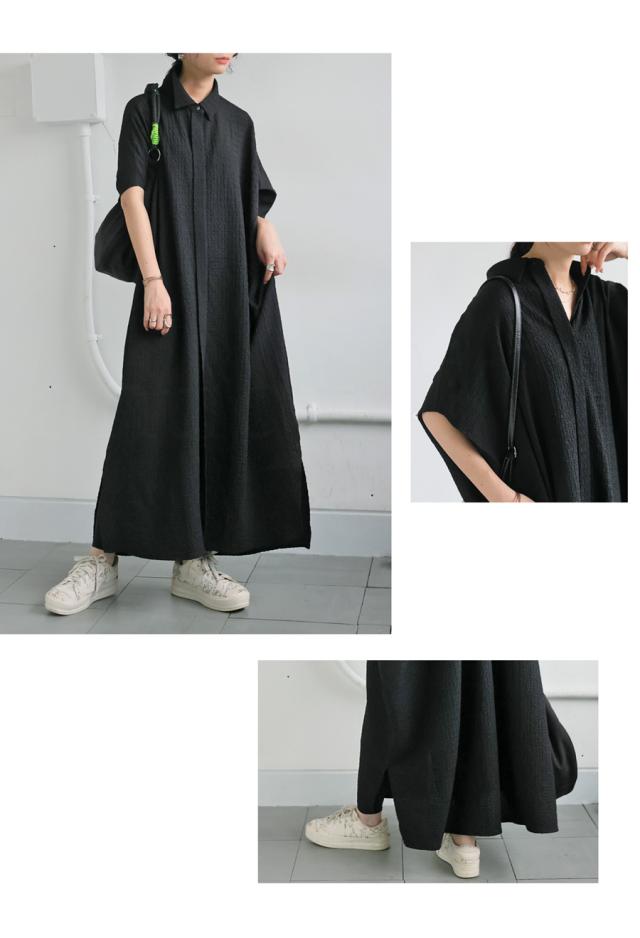 yp-00184 ワンピース ワンピ ゆったり 体型カバー レギュラーカラー 半袖 涼しい 夏羽織り カジュアル ナチュラル おしゃれ 上品 旅行 春 夏 ポケット付き 羽織り スリット