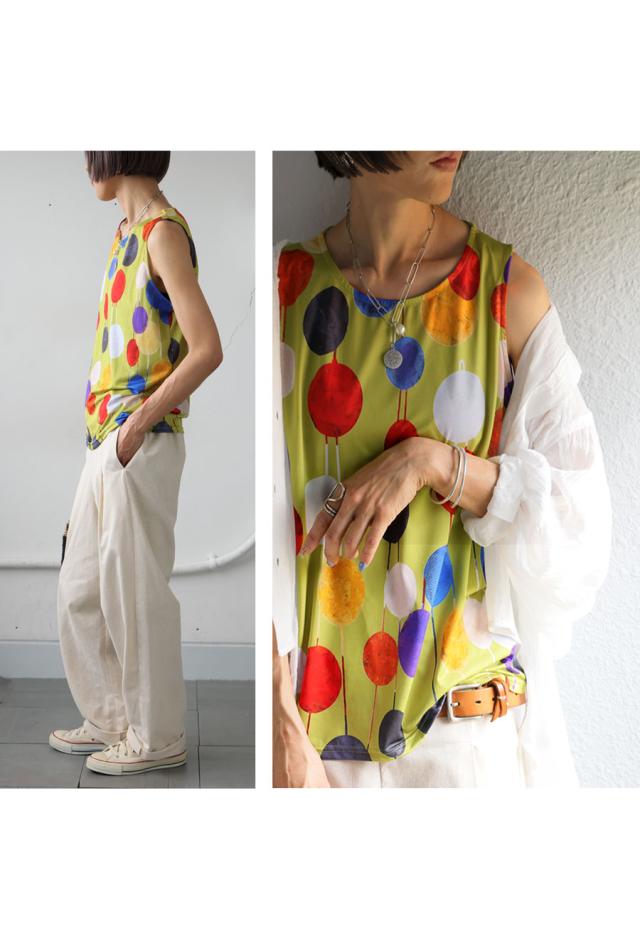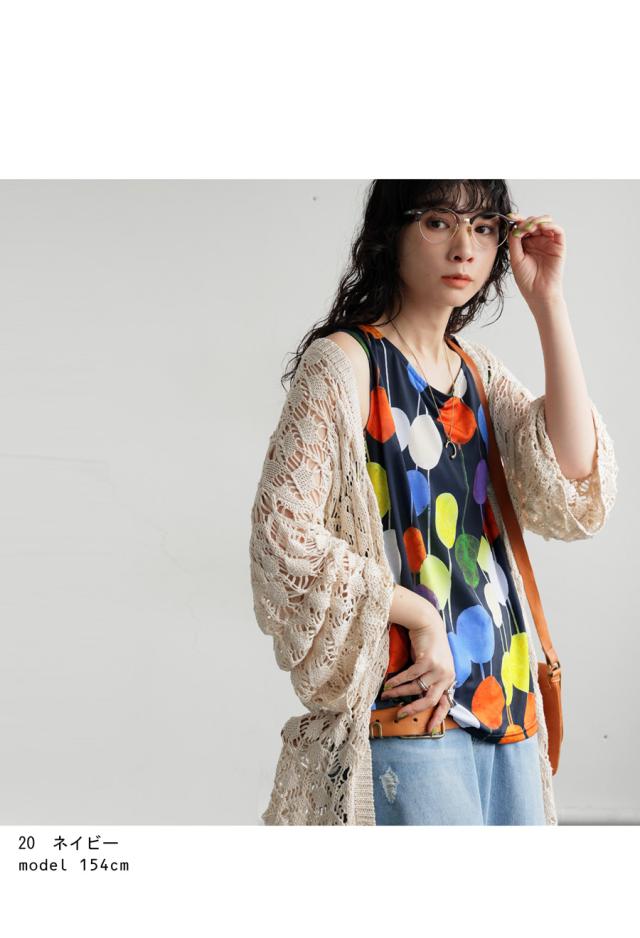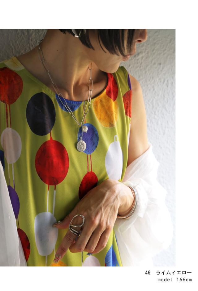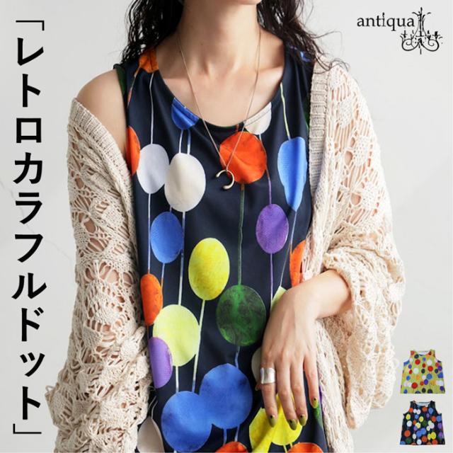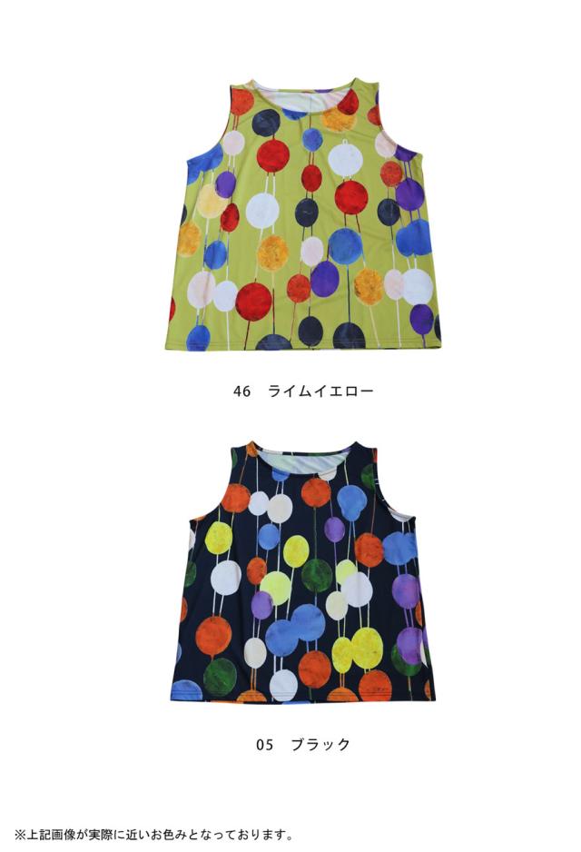 ke-03334 タンク ノースリーブ Uネック ドット 水玉柄 柄 カラフル 速乾 伸縮性 シンプル 涼しい 軽い 柄トップス 着映え 春 夏 インナー レイヤード ゆったり