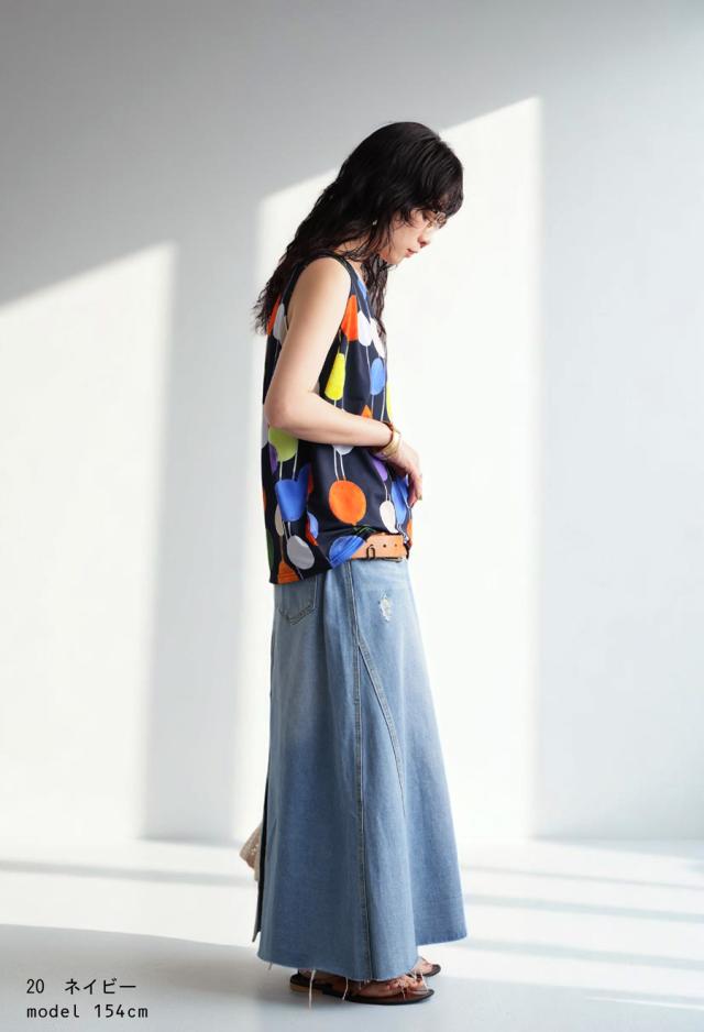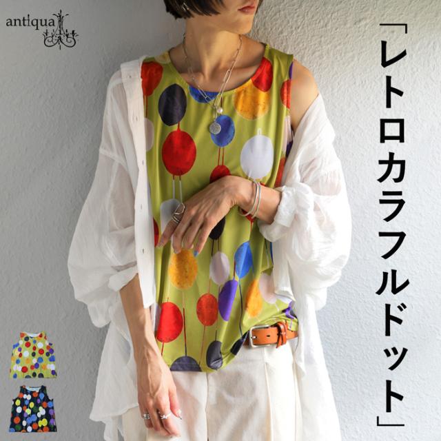 印象的なドット柄が視線を惹きつける、夏の主役にふさわしいノースリーブトップスが登場しました。