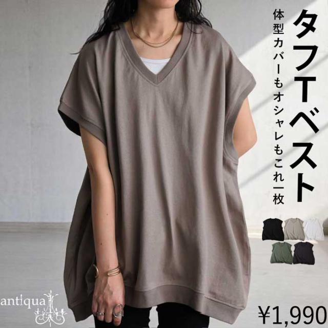 シンプルな無地デザインでベストのようにレイヤードスタイルにも取り入れやすく、トップスとしても幅広く活躍します。