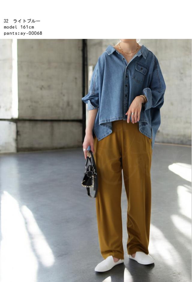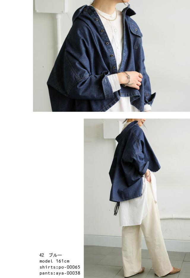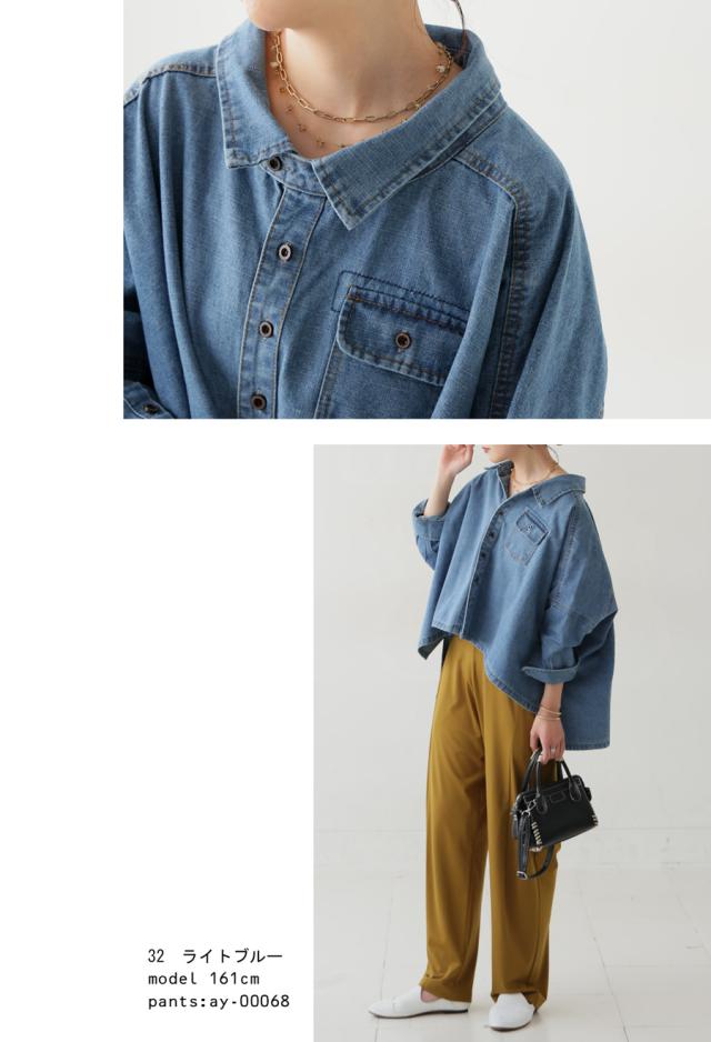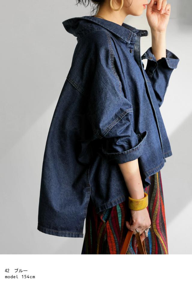 aj-01856 七分袖 デニム 羽織り レギュラーカラー デニムジャケット Gジャン 前後差 落ち感 折り返し ライトアウター 軽アウター ゆったり すっきり 体型カバー 華奢見せ こなれ