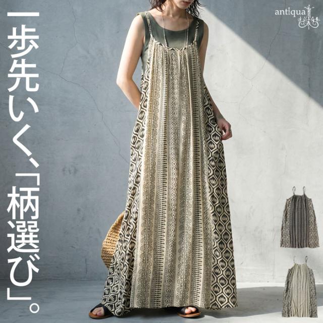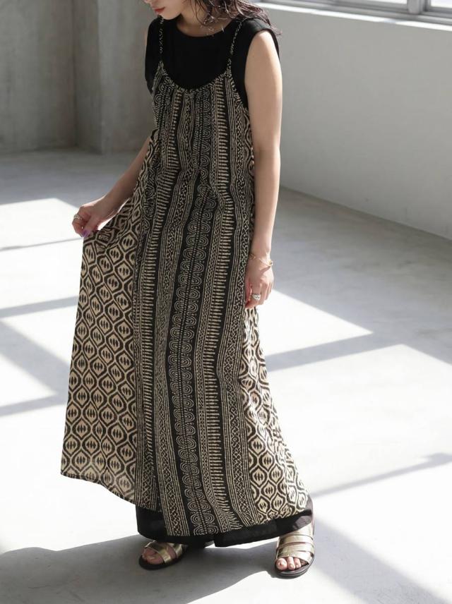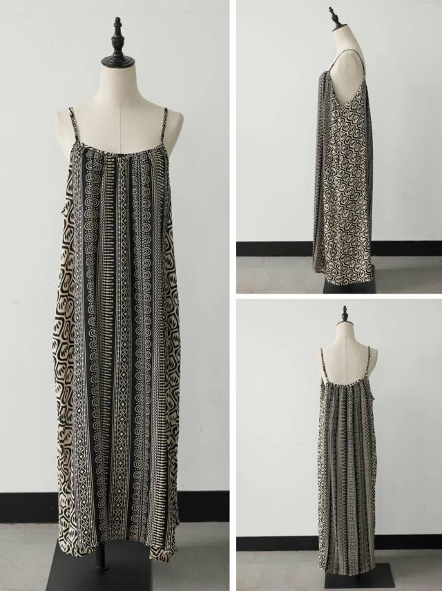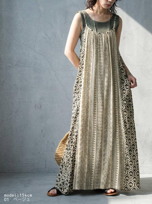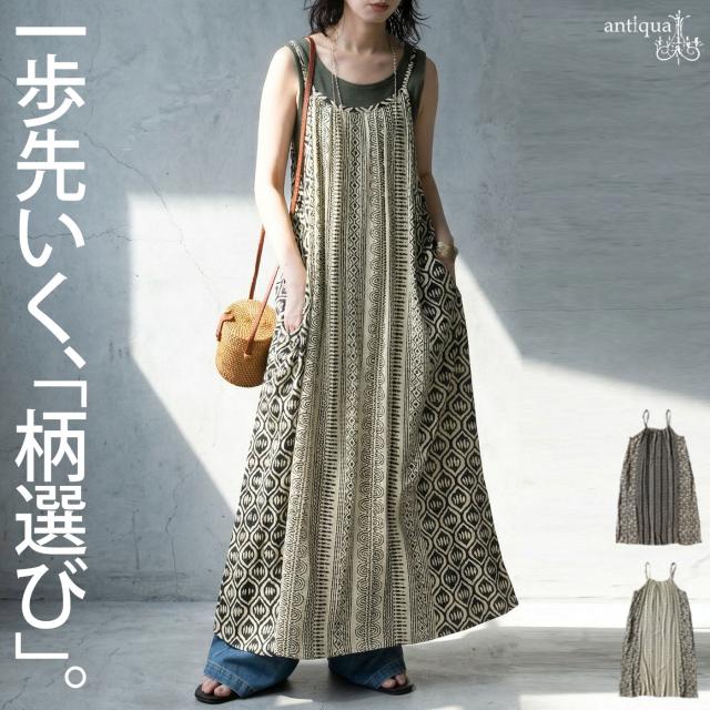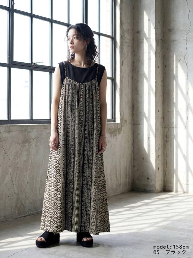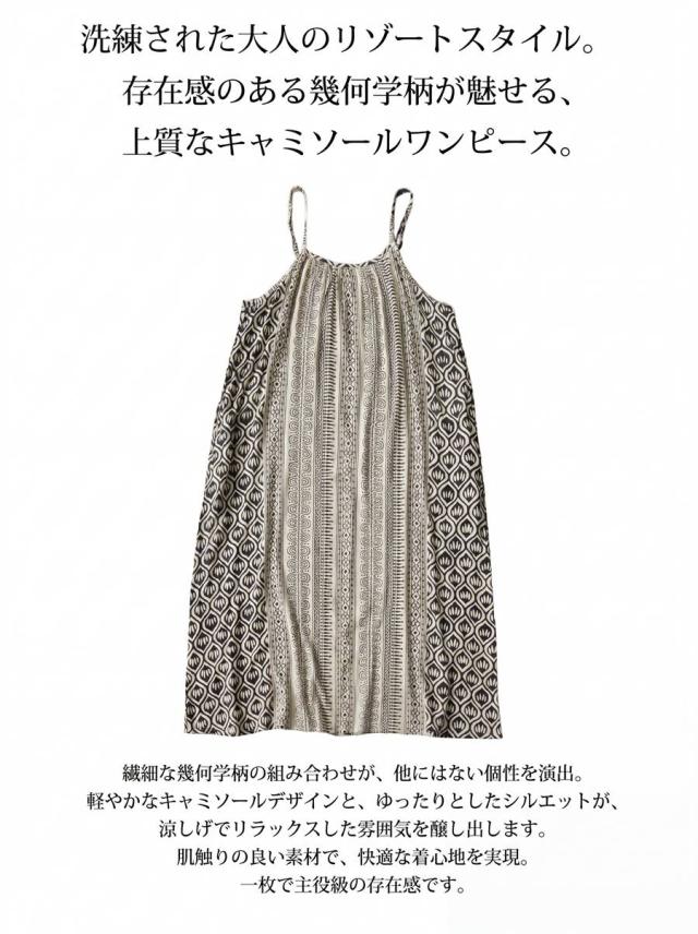 幾何学柄 キャミワンピース レディース ロング丈 送料無料・(80)メール便可 春新作