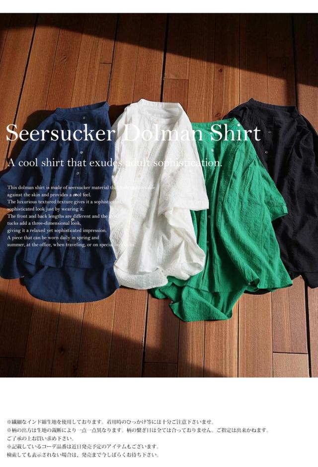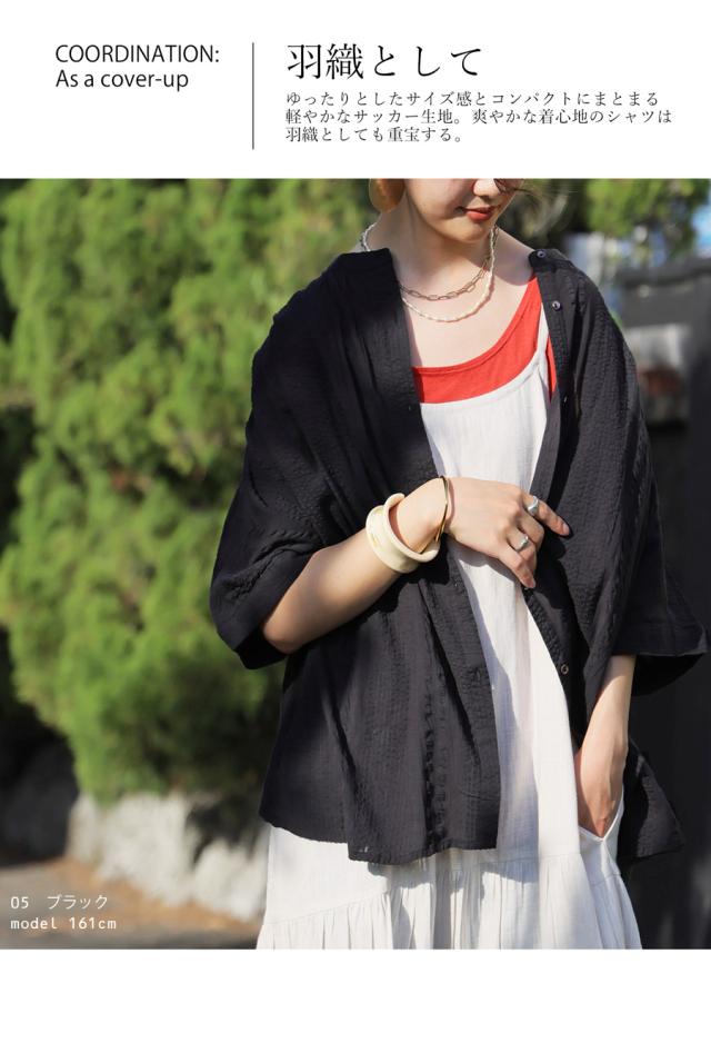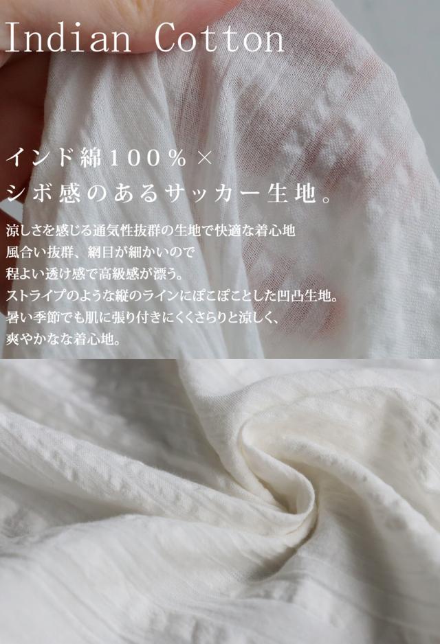 【予約:4月下旬納期】インド綿 シアサッカー シャツ レディース 半袖 送料無料・再入荷 (80)メール便可