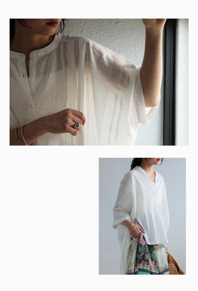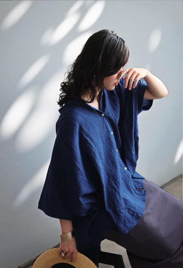 インド綿100%の魅力を引き出した、涼やかでナチュラルなドルマンシャツ。