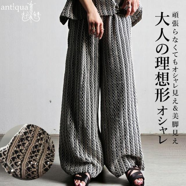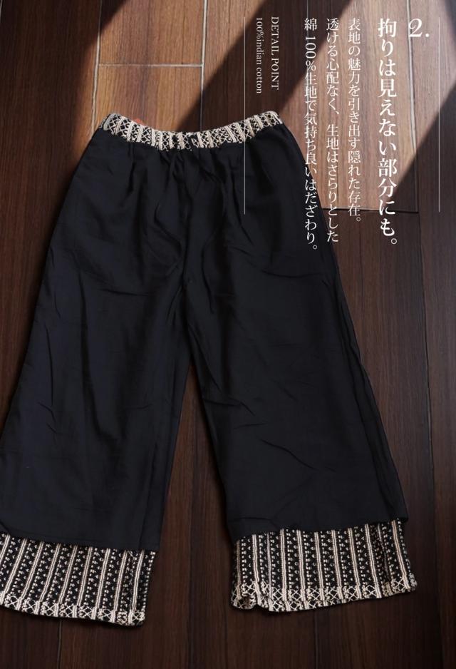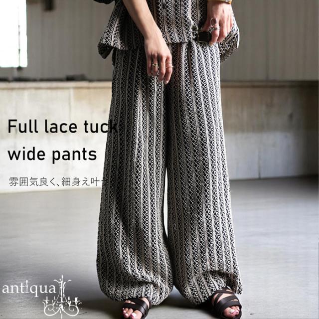 【検索ワード】レースタックワイドパンツ パンツ レディース ボトムス 柄パンツ 柄 レース 縦軸レース ロング ゆったり ワイド ワイドシルエット ストレート ワイドストレート セットアップ 総柄 タック 落ち感 長ズボン ポケット付き 裏地付き ウエストゴム 前フラット 後ろゴム 綿 コットン 綿100 通気性 涼しい 美脚 脚長 すっきり リラックス 体型カバー 細見え 着痩せ 大きめ 大きいサイズ ブラック 黒 サイズ展開 Medium Large ユニセックス antiqua mulumulu アンティカ ムルムル 大人 おしゃれ 10代 20代 30代 40代 50代 60代 春 夏 お洒落 カジュアル かわいい かっこいい あんてぃか インド製 ジャイプール 繊細 手仕事 職人技