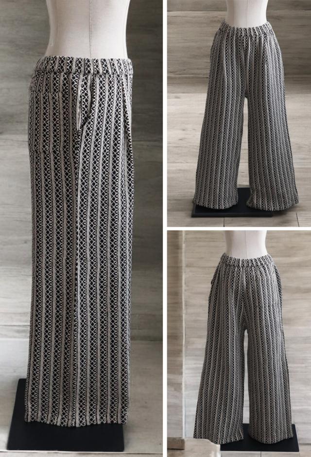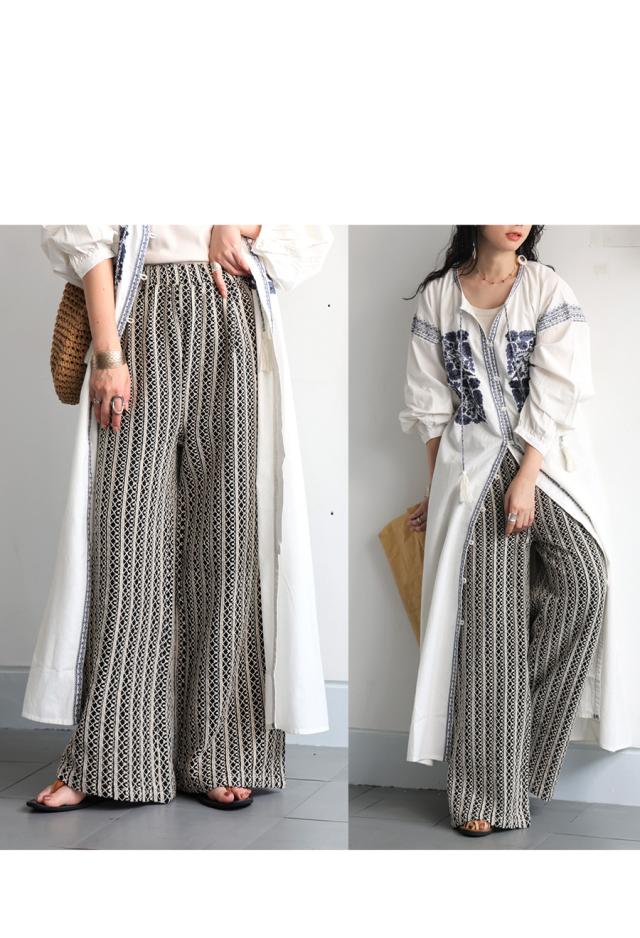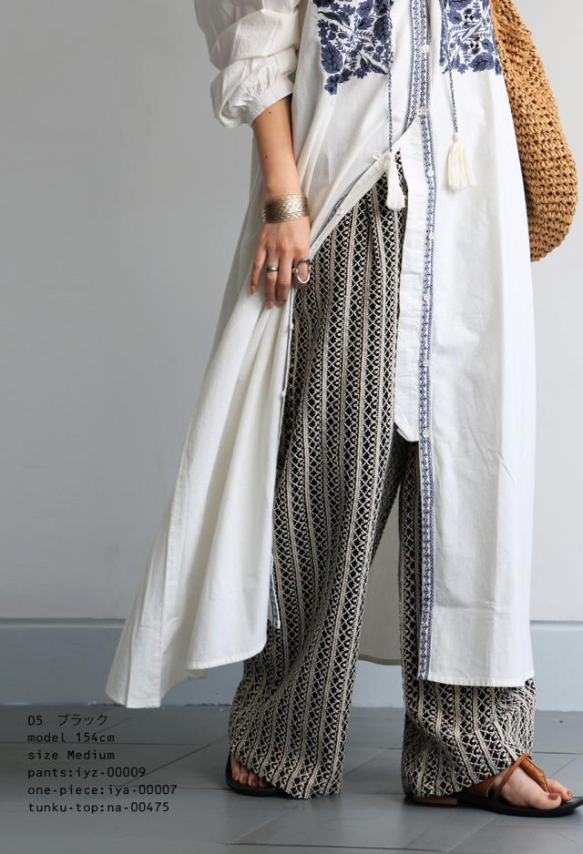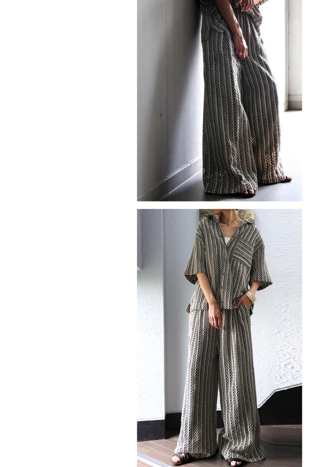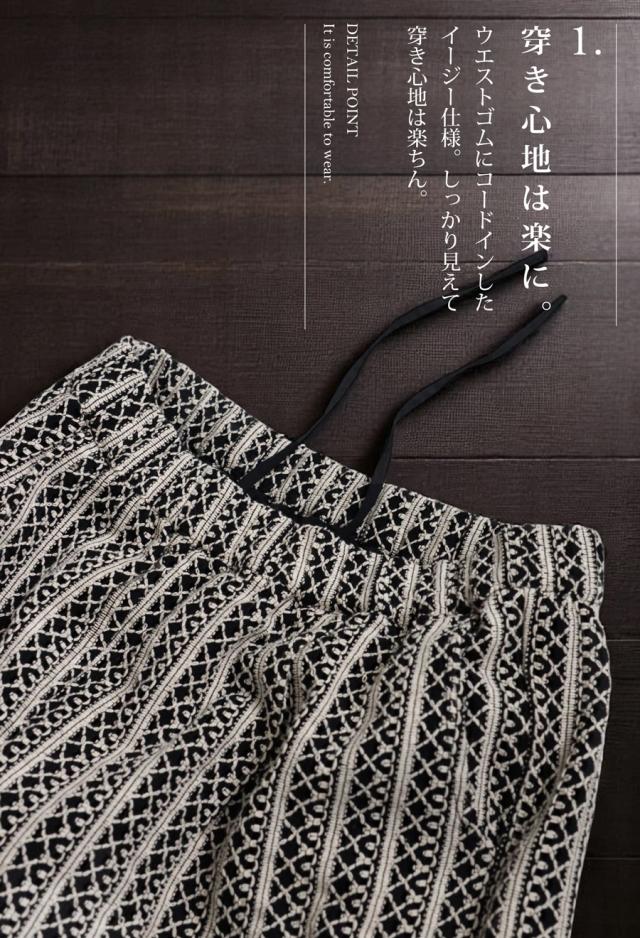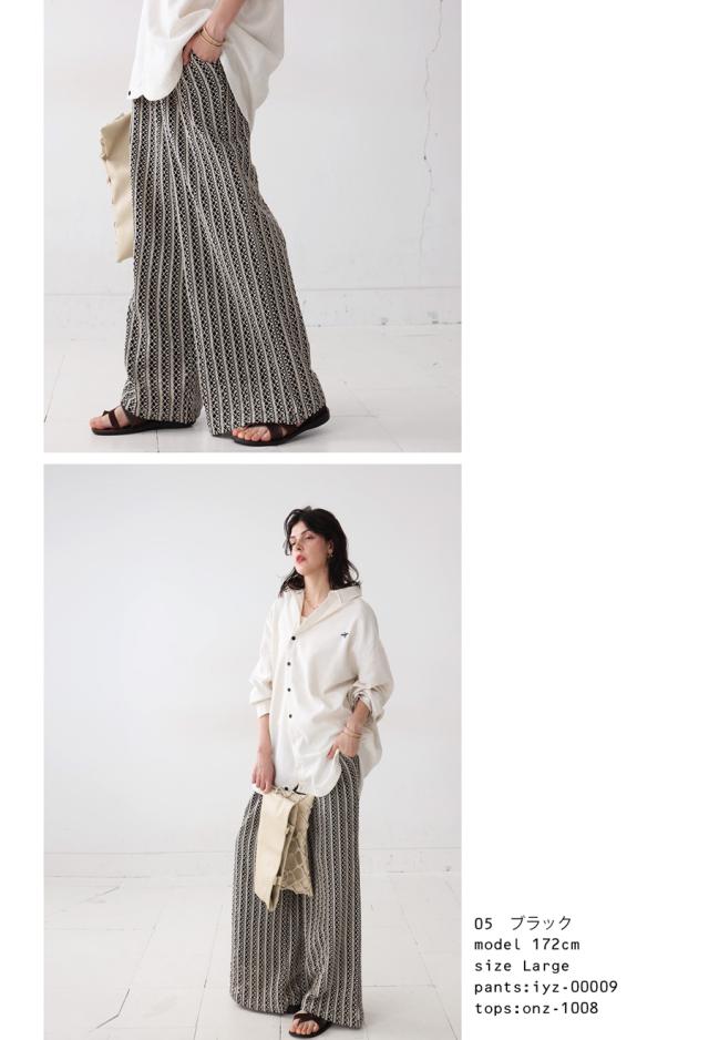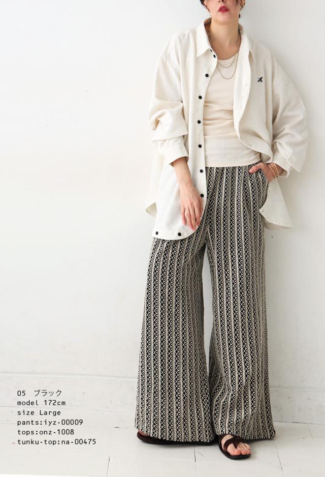 iyz-00009 柄 レース 縦軸レース ロング ゆったり ワイド ワイドシルエット ストレート ワイドストレート 総柄 落ち感 長ズボン ポケット付き 裏地付き ウエストゴム 前フラット 後ろゴム