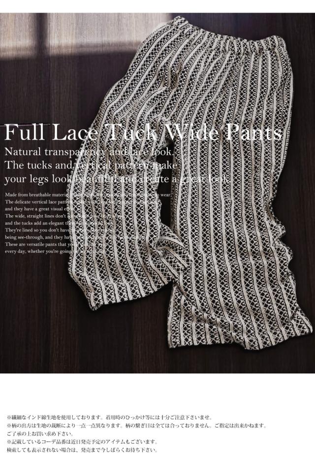 優しい風合い『フルレースタックワイドパンツ』