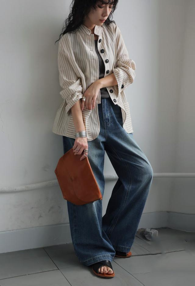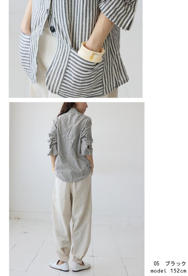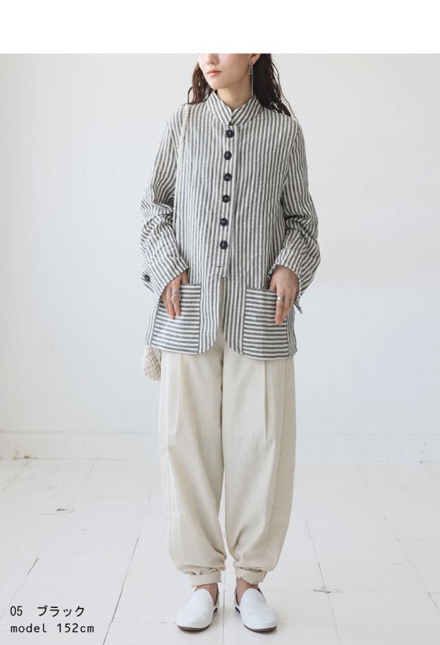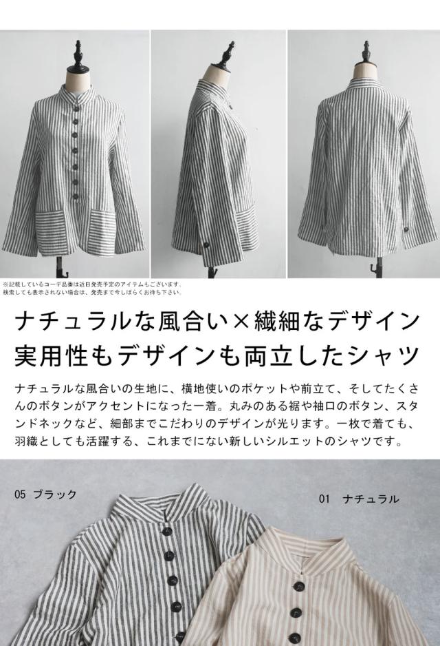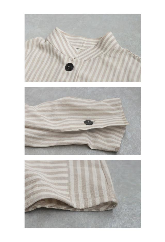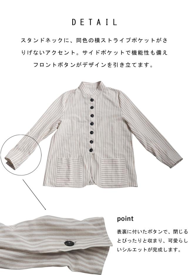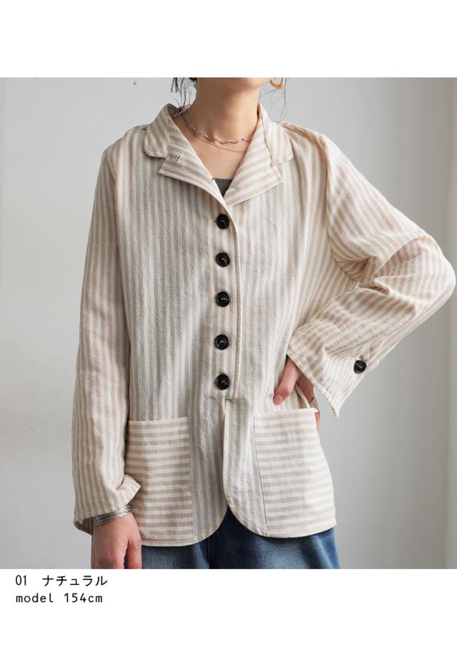 pa-03793 羽織り 長袖 ストライプ柄 柄シャツ スタンドネック 柄 前開き ボタン ポケット付き 綿100 綿 コットン ゆったり カジュアル ラフ モード スタイリッシュ モダン