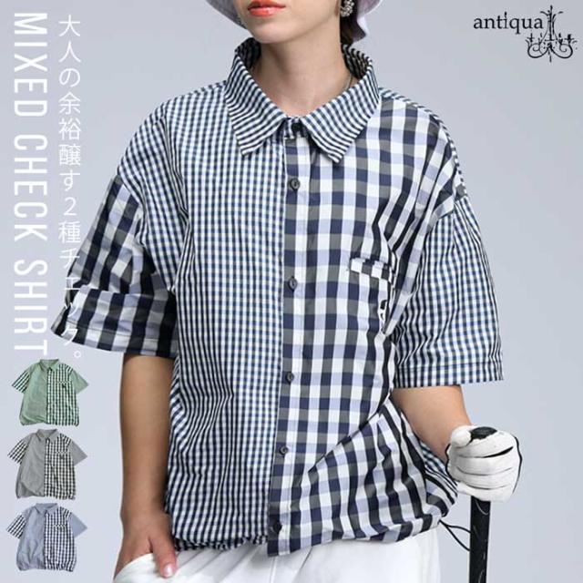 【検索ワード】ANTIQUA GOLF×seventytwo clubhouse【STCH】 チェックシャツ シャツ レディース トップス 半袖 チェック柄 柄 柄シャツ ミックスチェック 切り替え ロゴ ドロスト 裾ドロスト スポーティー ゆったり シャカシャカ レギュラーカラー 胸ポケット 羽織り 前開き カジュアルシャツ デザインシャツ 大きめ 大きいサイズ セットアップ シワになりにくい マット ブラック 黒 ネイビー 紺 グリーン 緑 サイズ展開 ML LXL ユニセックス ANTIQUA GOLF seventytwo clubhouse【STCH】コラボ antiquagolf アンティカ ゴルフ 女性 女 おしゃれ 10代 20代 30代 40代 50代 60代 seventytwo clubhouse STCH セブンティツークラブハウス 春 夏 お洒落 カジュアル ストリート かわいい かっこいい カッコイイ レディースファッション ゴルフウェア ゴルフ用品 スポーツウェア 普段使い スポーツ 運動 ゴルフブランド トレンド コーディネート あんてぃか