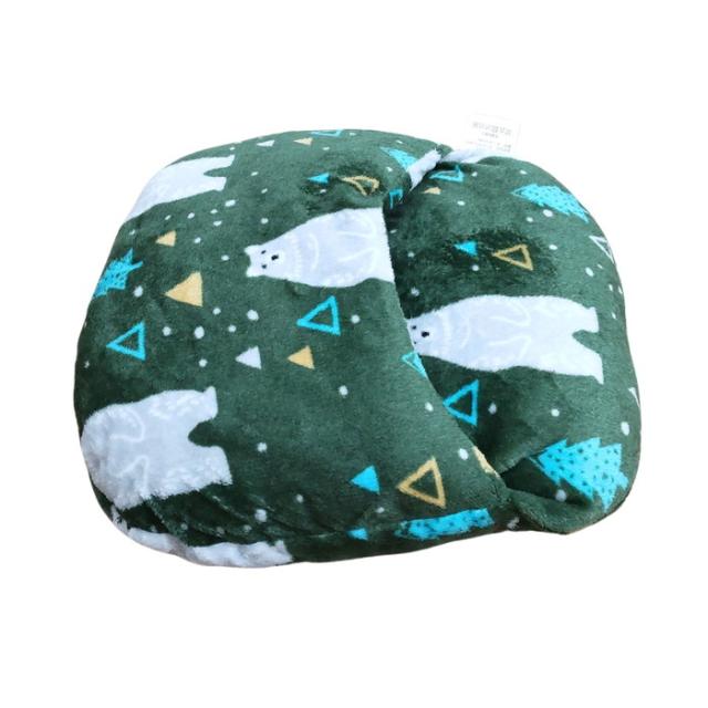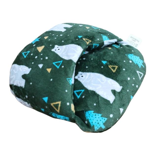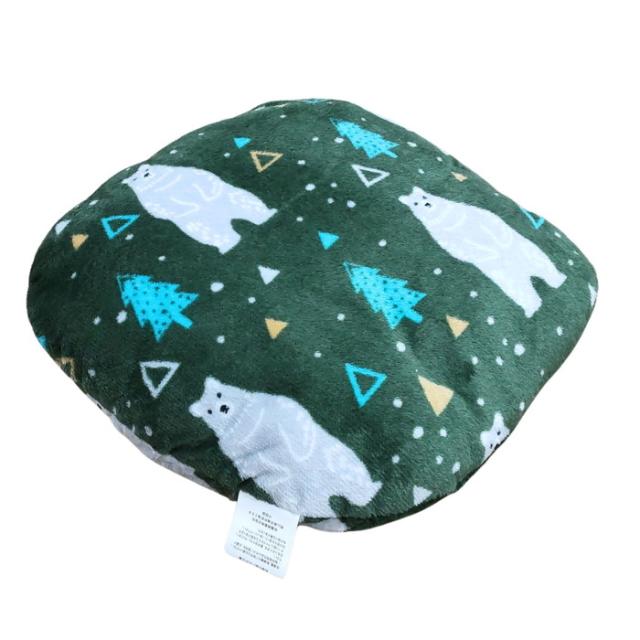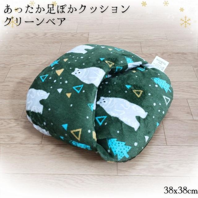 あったか足ぽかクッション かわいいベア柄 グリーン色 38x38cm 冷える足元を暖かく 冬用 フランネル ふっくらふかふか