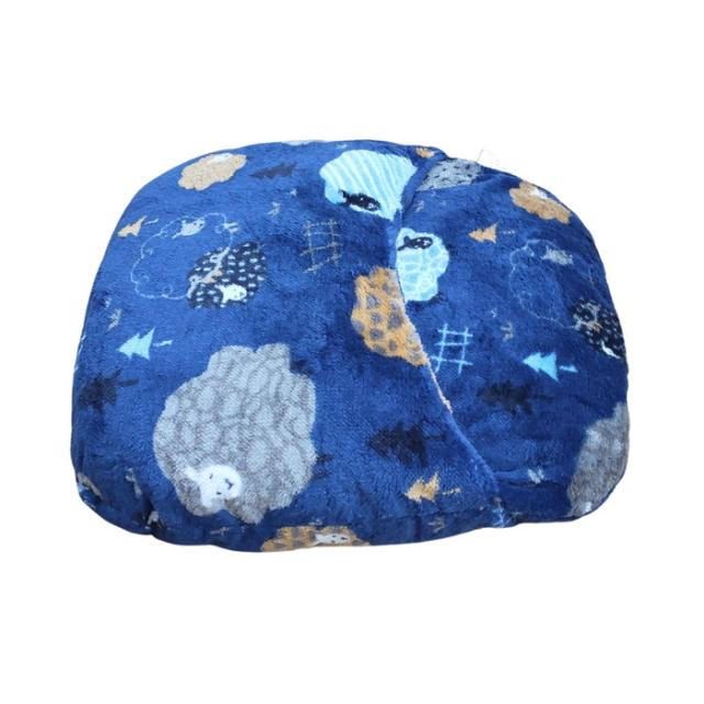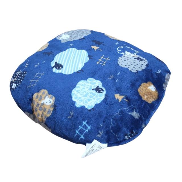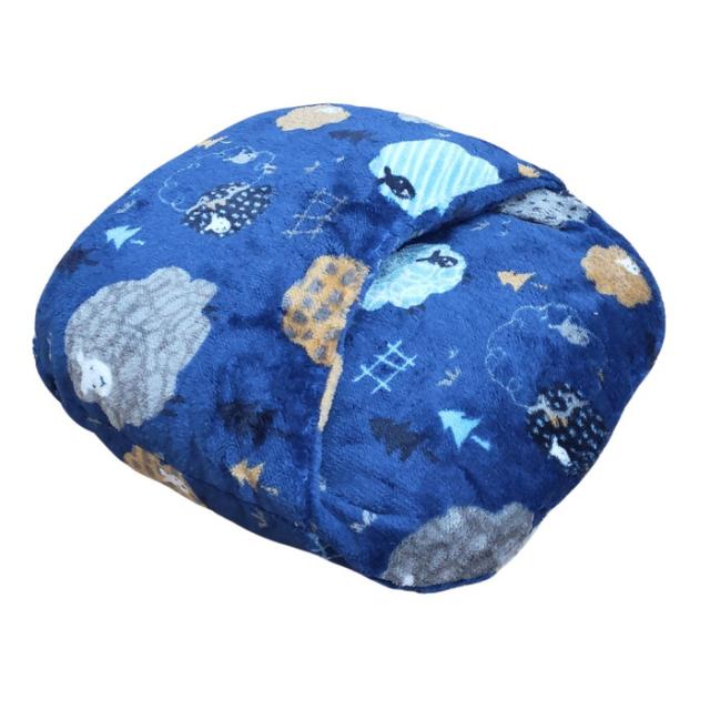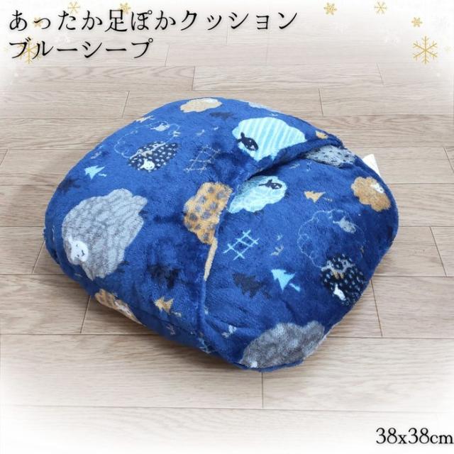 あったか足ぽかクッション かわいい羊柄 ブルー色 38x38cm 冷える足元を暖かく 冬用 フランネル ふっくらふかふか