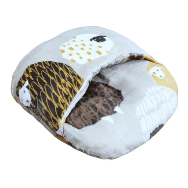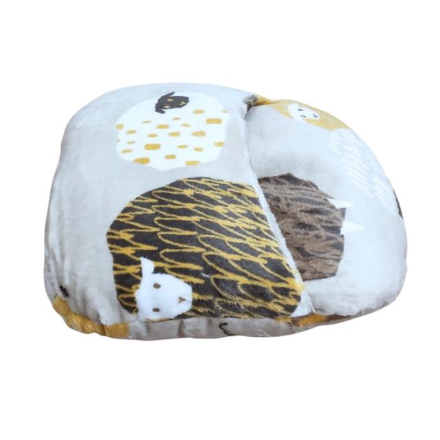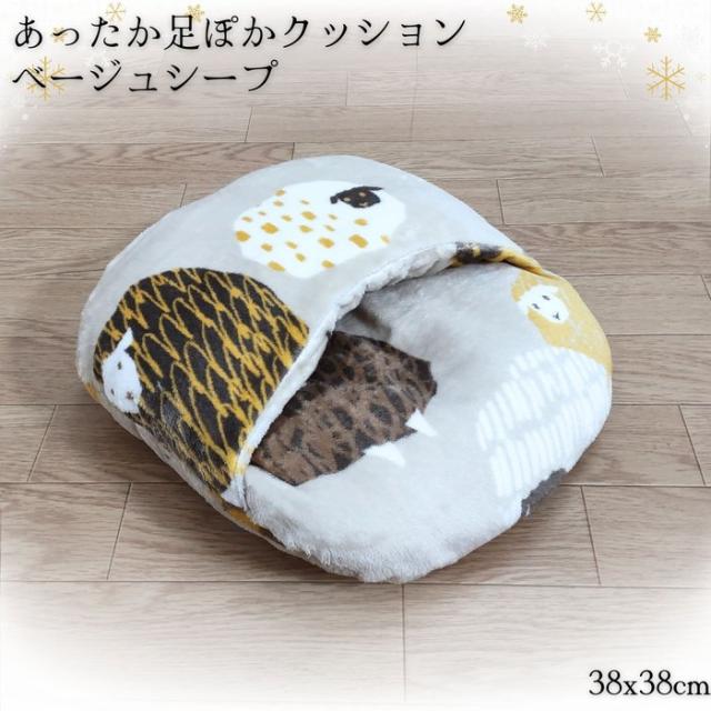 あったか足ぽかクッション かわいい羊柄 ベージュ色 38x38cm 冷える足元を暖かく 冬用 フランネル ふっくらふかふか