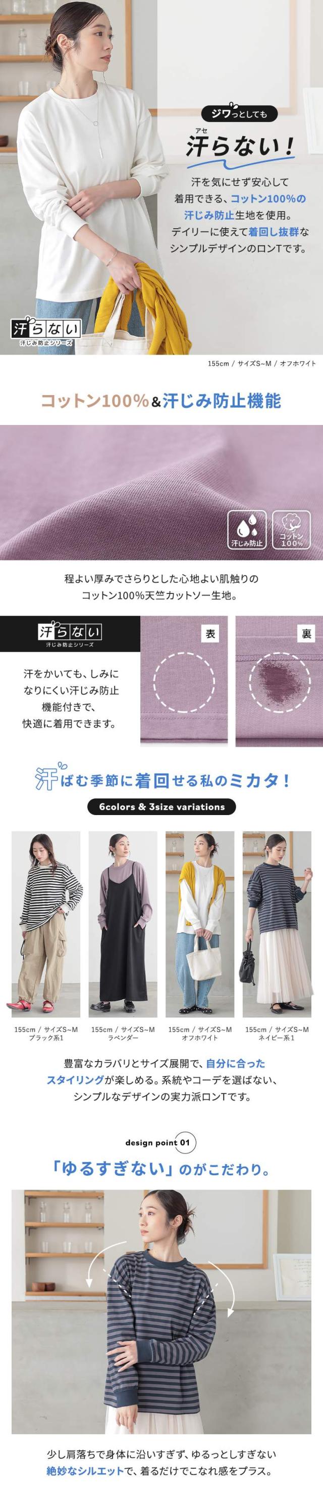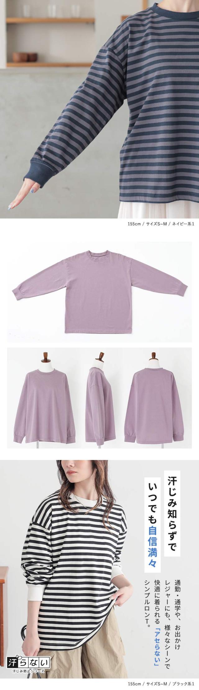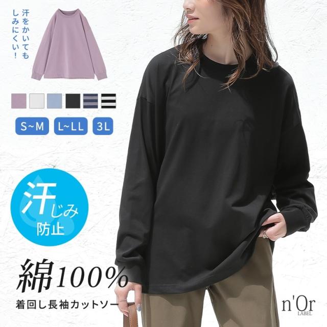 カットソー レディース トップス 長袖 ロンT 綿100% 袖口リブ レイヤード 重ね着 プルオーバー 春 夏 秋 汗ジミ防止シリーズ 汗染み防止 汗ジミ防止 汗じみ防止 汗染み 汗じみ 汗ジミ 【TP】 Tシャツ クルーネック n'OrLABEL ノア—ルレーベル 大人女子 大人可愛い お洒落可愛い 大人カジュアル ベーシック ラフ オフィスカジュアル 上品 きれいめ ナチュラル ホワイト 白 オフホワイト ショート丈 ミディ丈 ミドル丈 ドロップショルダー ボーダー柄 無地 コットン100% おうちで洗える 機能性 カジュアル シンプル モード キレカジ フェミニン ゆったり ゆる 二の腕カバー Sサイズ Mサイズ Lサイズ LLサイズ 3Lサイズ XLサイズ ぽっちゃり 体型カバー 大きいサイズ プラスサイズ 女子会 オフィス 通勤 通学 お買い物 お出掛け 旅行 リゾート レジャー アウトドア キャンプ おしゃれ お洒落 トレンド 流行 osharewalker オシャレウォーカー おしゃれうぉーかー パープル 紫 ラベンダー ブルー 青 ネイビー 紺 ブラック 黒 バイカラー 機能性アイテム 【ow_en】 [ID]11tn0fc